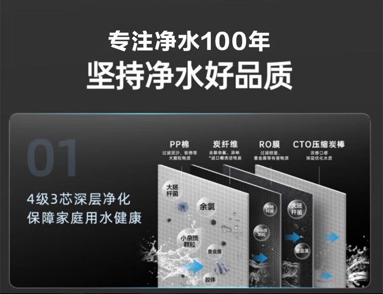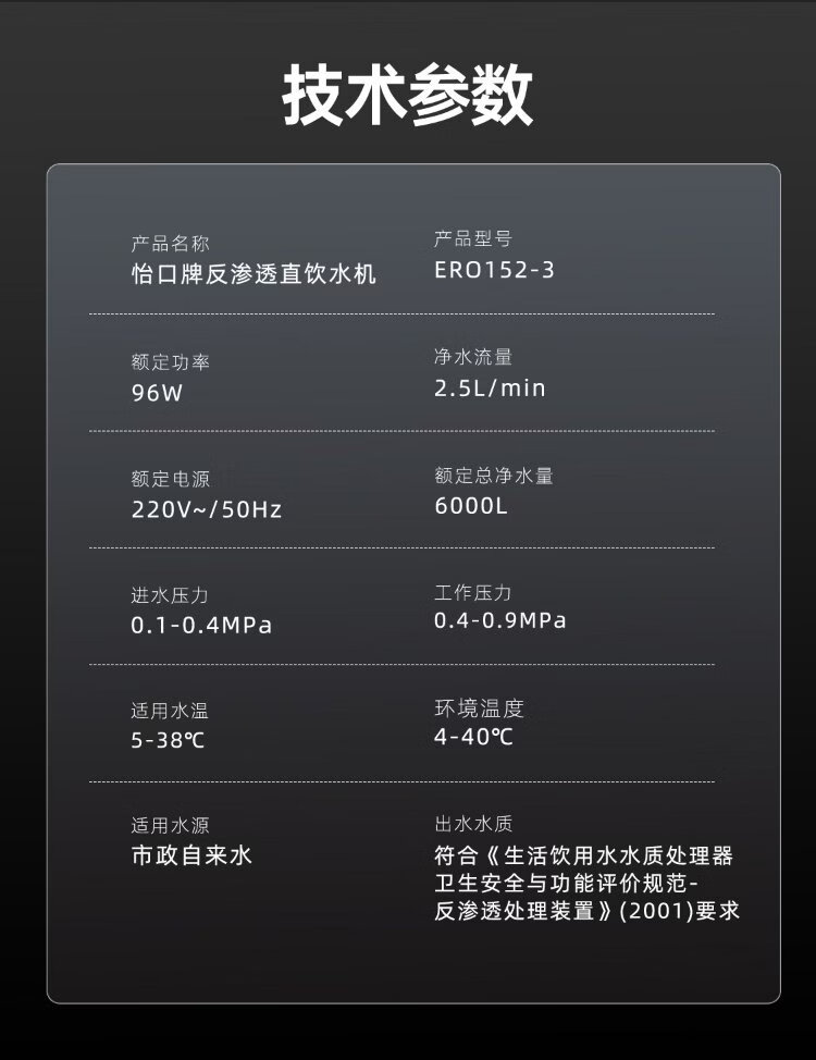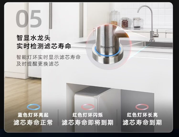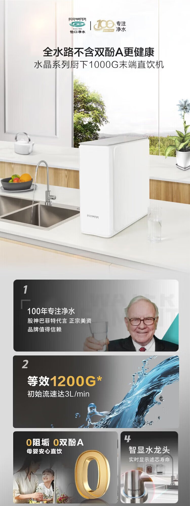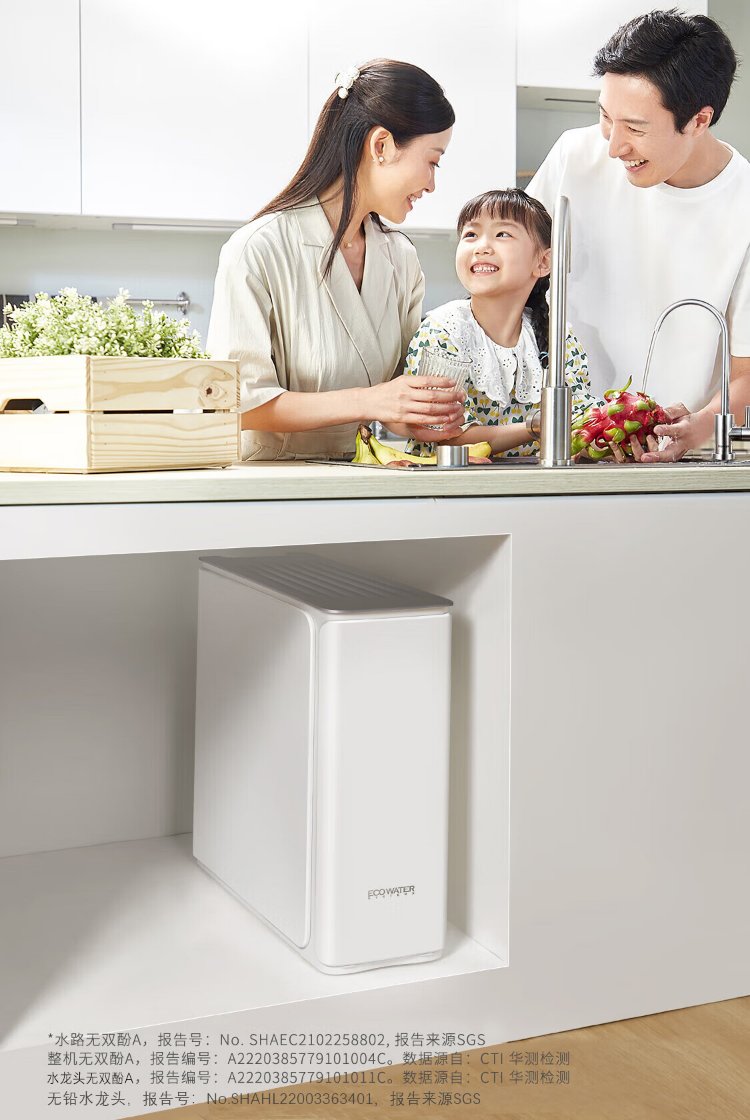 ECOWATER water purifier crystal 1000G home kitchen direct drinking RO membrane reverse osmosis 0 scale inhibitor 0 bisphenol A high quality maternal and infant grade ERO152-3