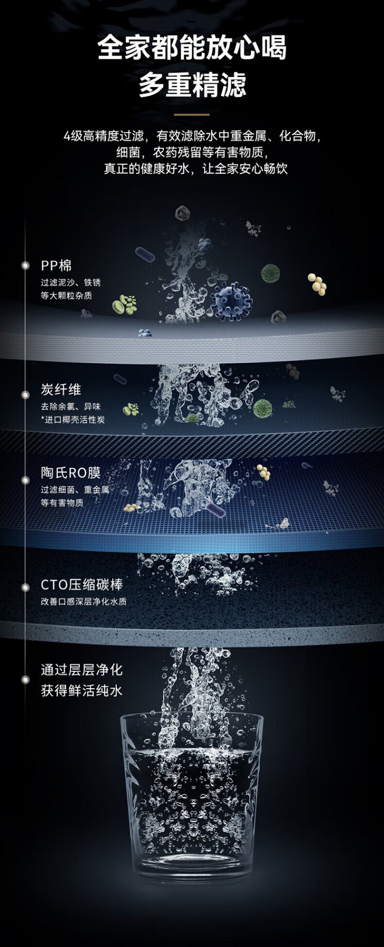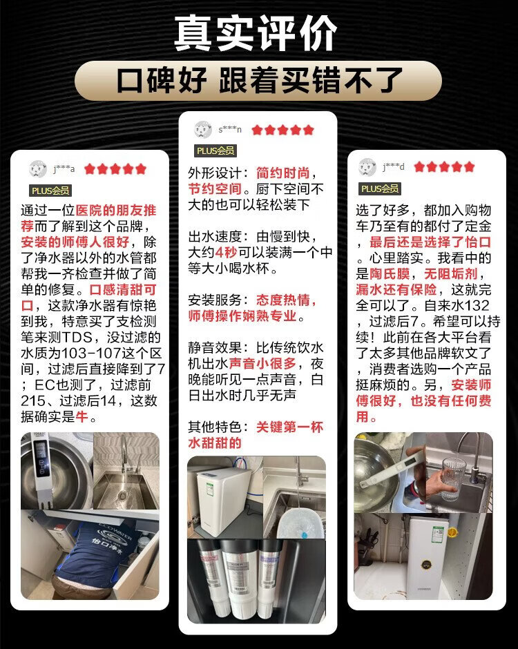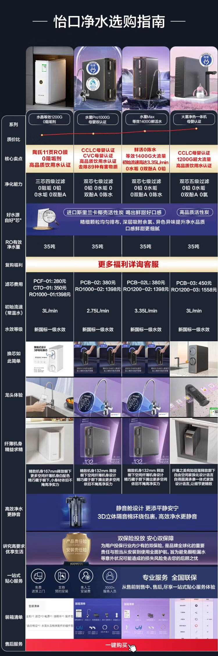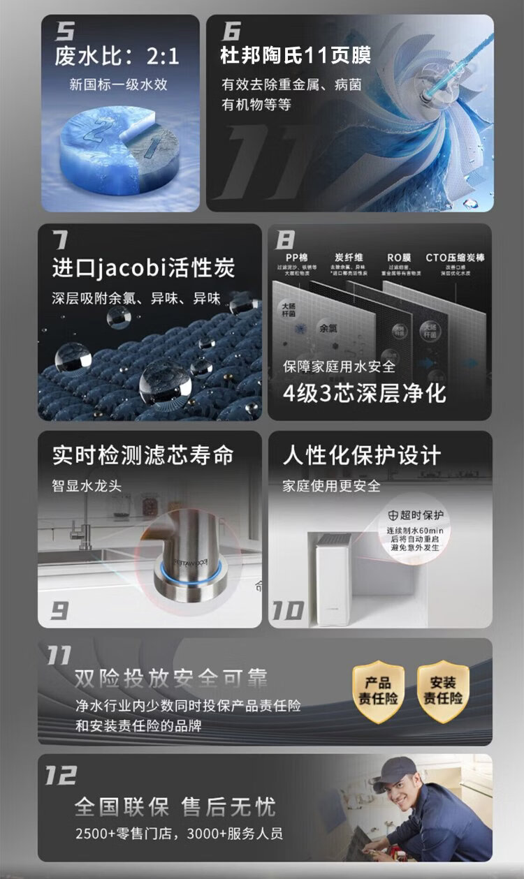 ECOWATER water purifier crystal 1000G home kitchen direct drinking RO membrane reverse osmosis 0 scale inhibitor 0 bisphenol A high quality maternal and infant grade ERO152-3