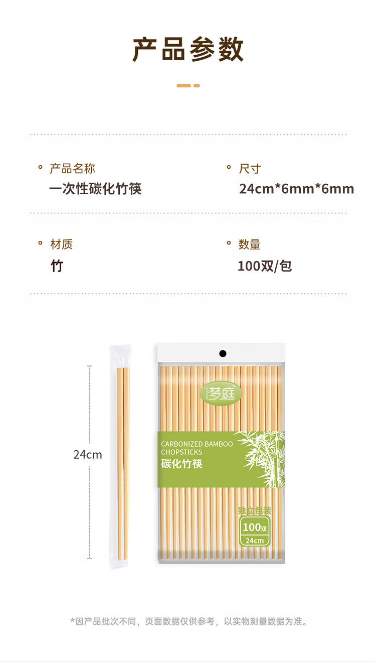 Mengting disposable carbonized chopsticks 100 pairs set individually packaged household tableware carbonized chopsticks hot pot chopsticks 203839