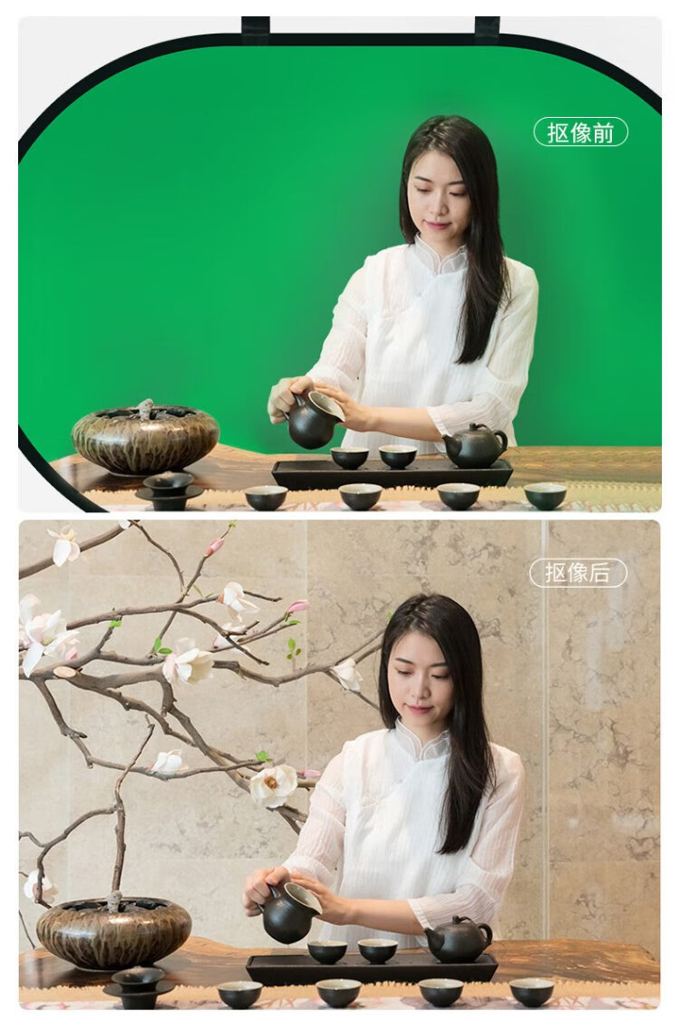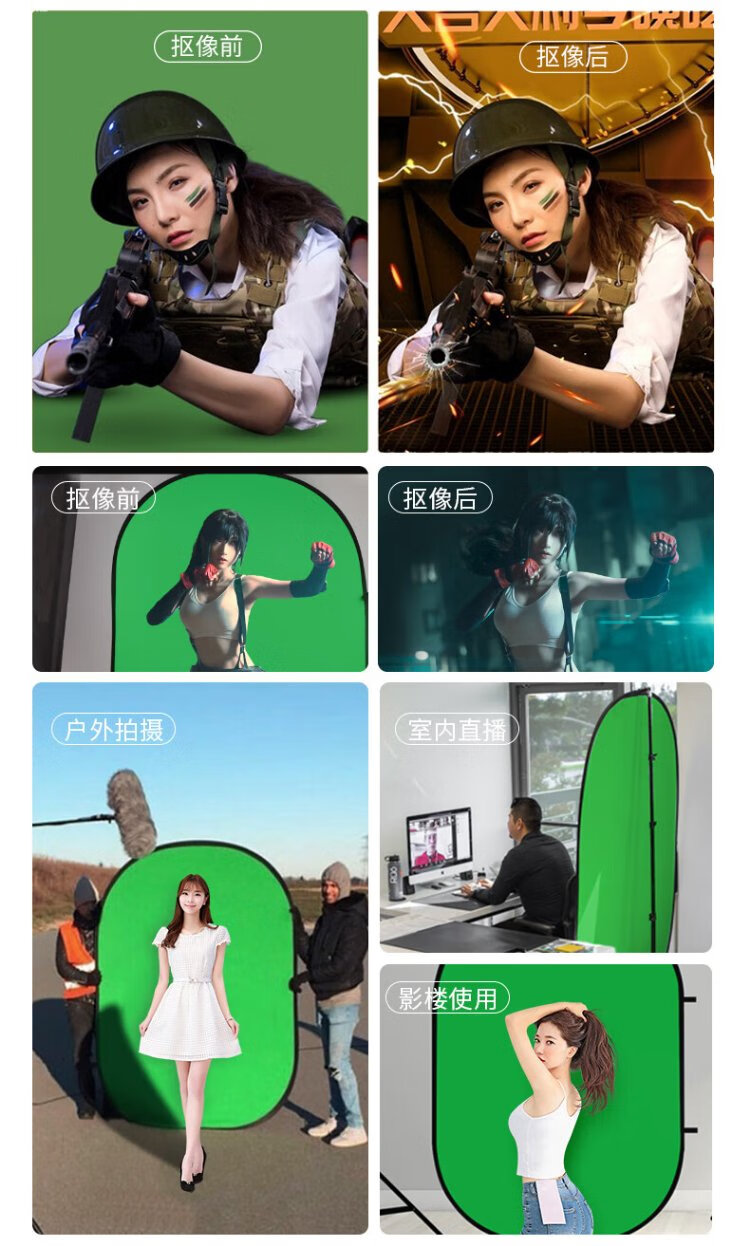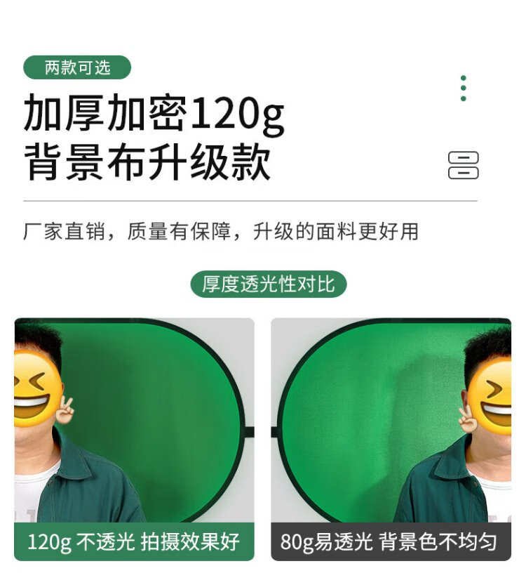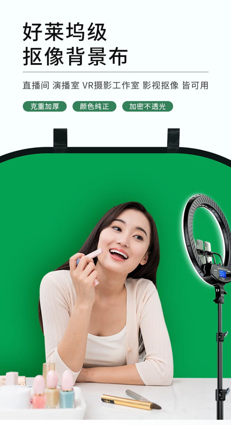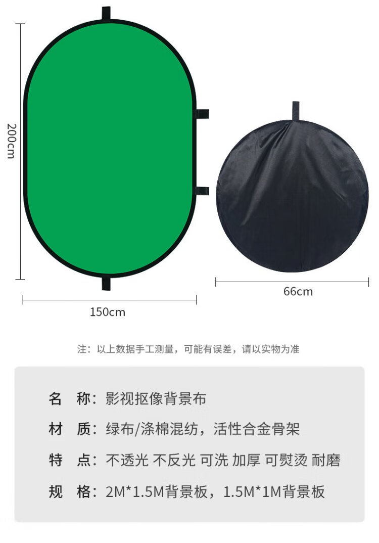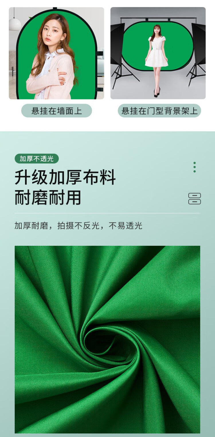 Yangfeisi YC5 professional live broadcast green screen keying cloth folding portable bracket-free thickened solid color green cloth background board film and television photography photography cloth video curtain 1.5*2 meters