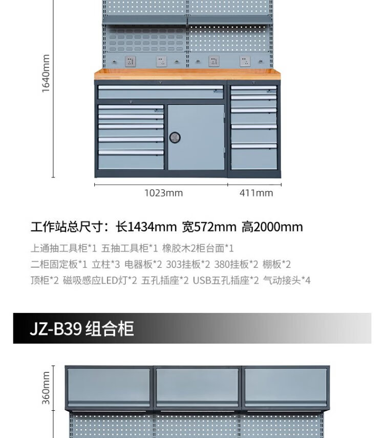 Corini heavy-duty workbench combined auto repair workstation drawer with lock tool cabinet storage cabinet auto repair parts hanging plate tool storage JZ-B39 can be customized