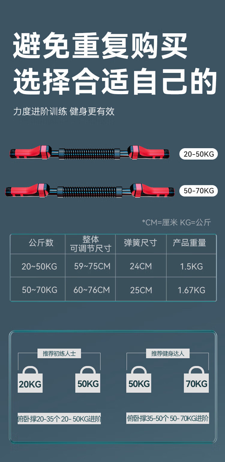 PROIRON arm strength arm strength bar 30-50KG men's adjustable spring grip bar chest muscle training equipment