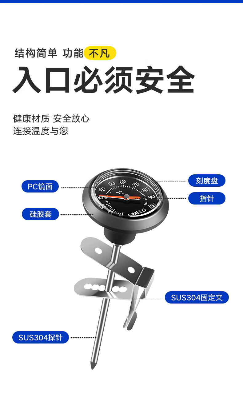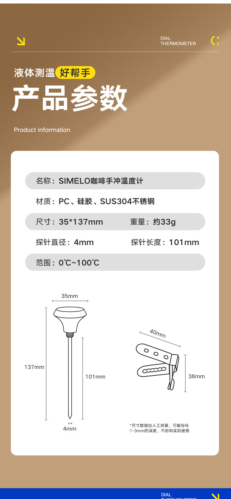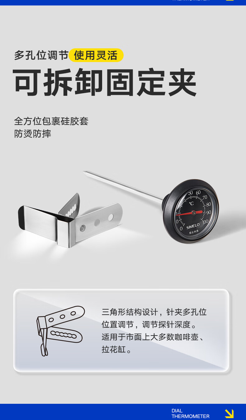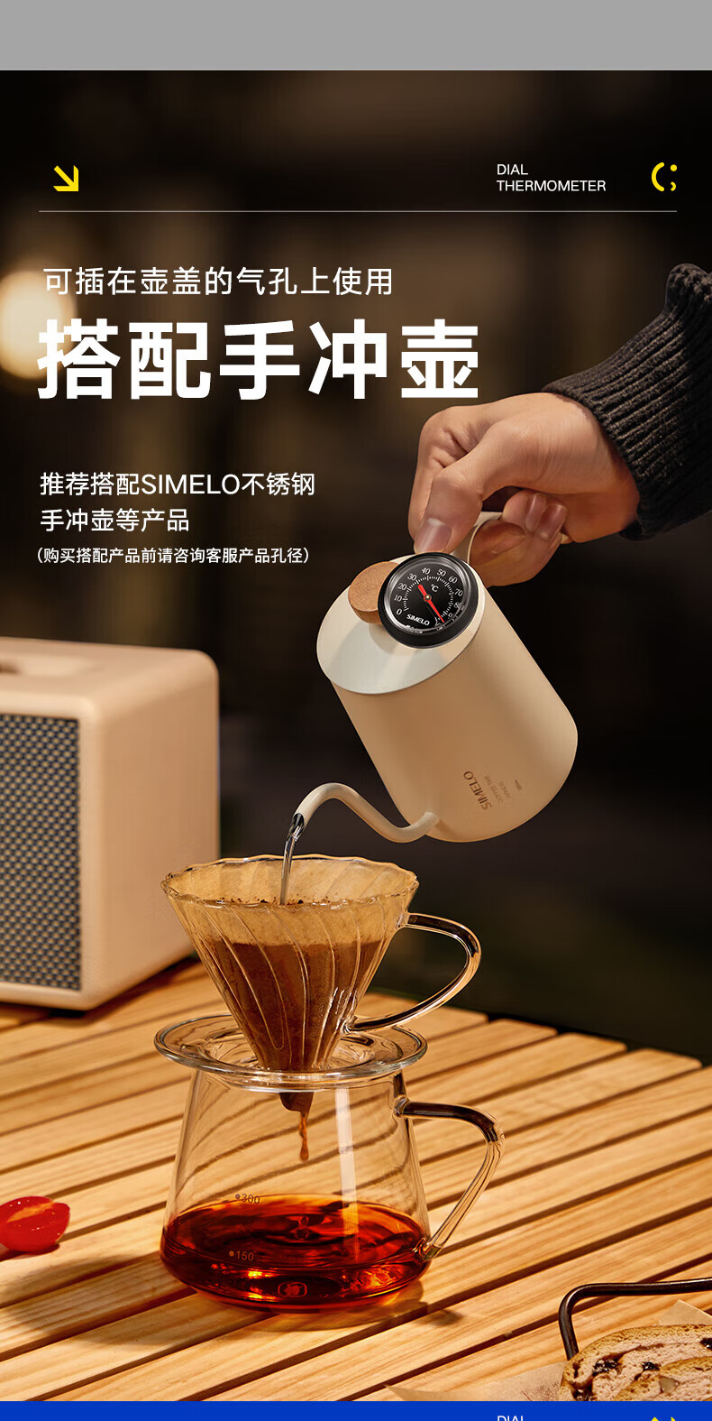 SIMELO hand-brewed coffee thermometer probe type milk frother thermometer pull flower cup hand-brewed kettle with thermometer