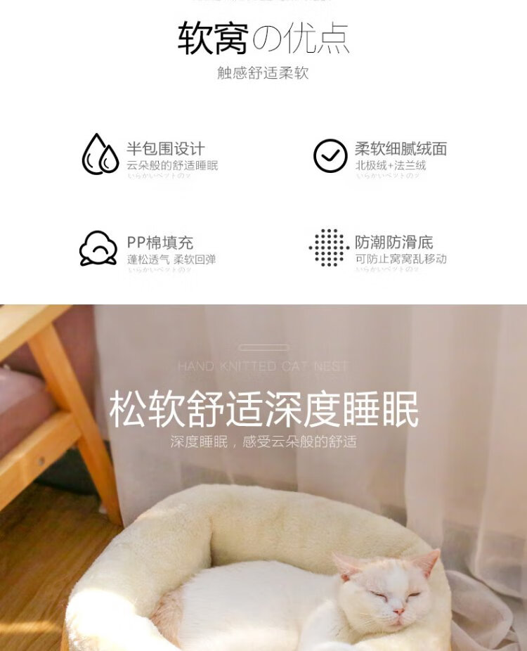 Hanhan Paradise cat kennel, universal for all seasons, winter warm cat pet mat, semi-enclosed small kennel, cat mat, cat bedding D