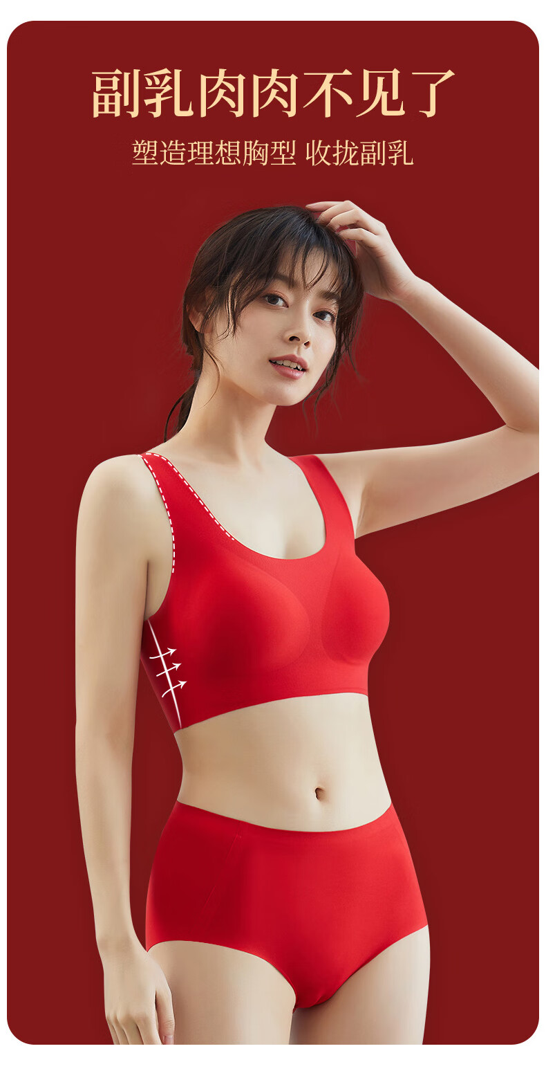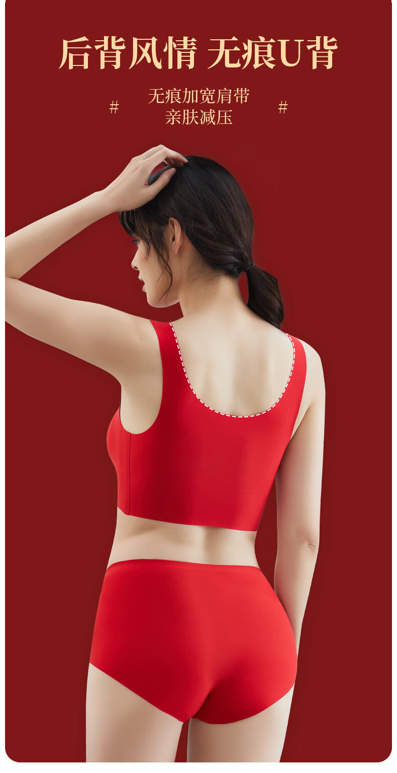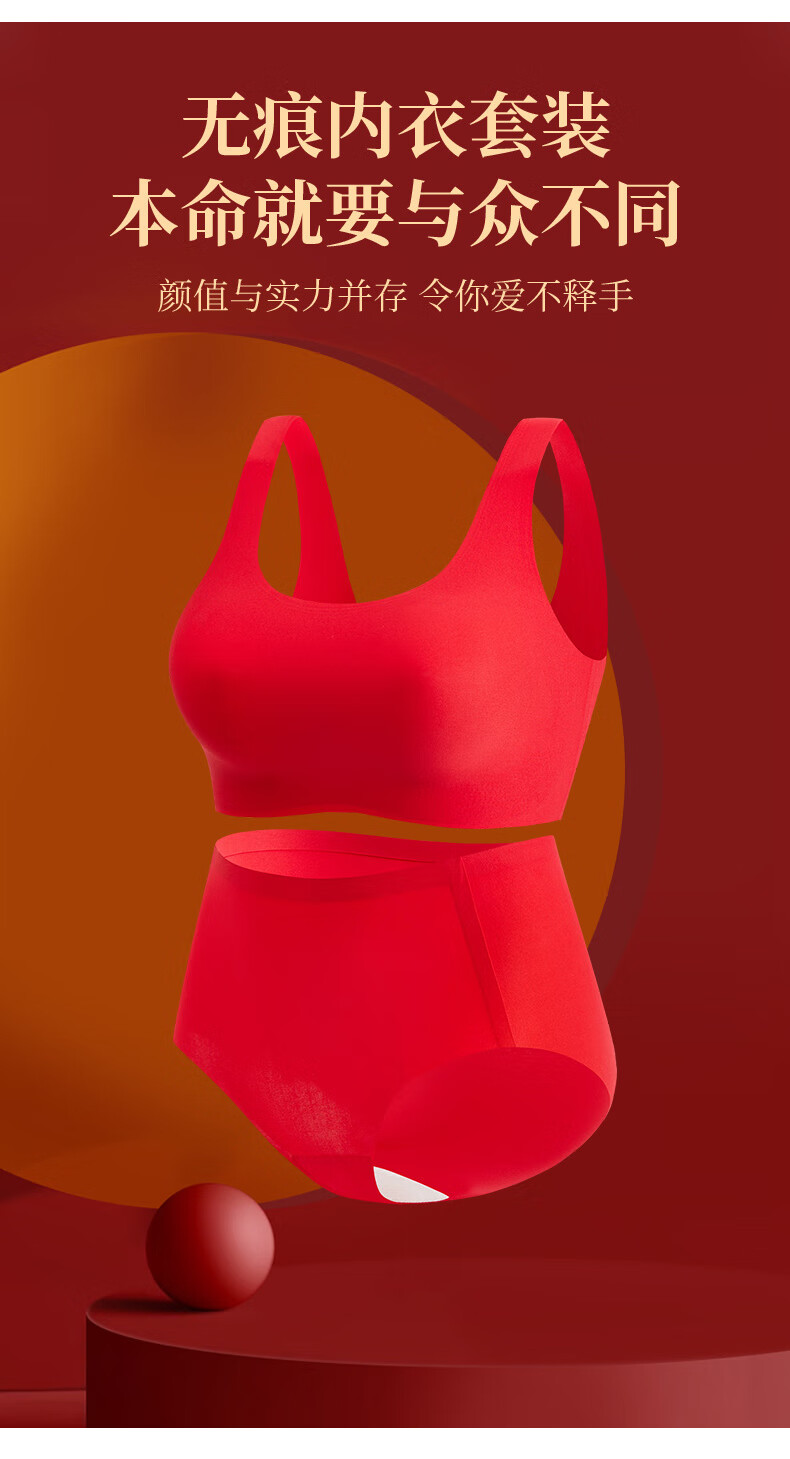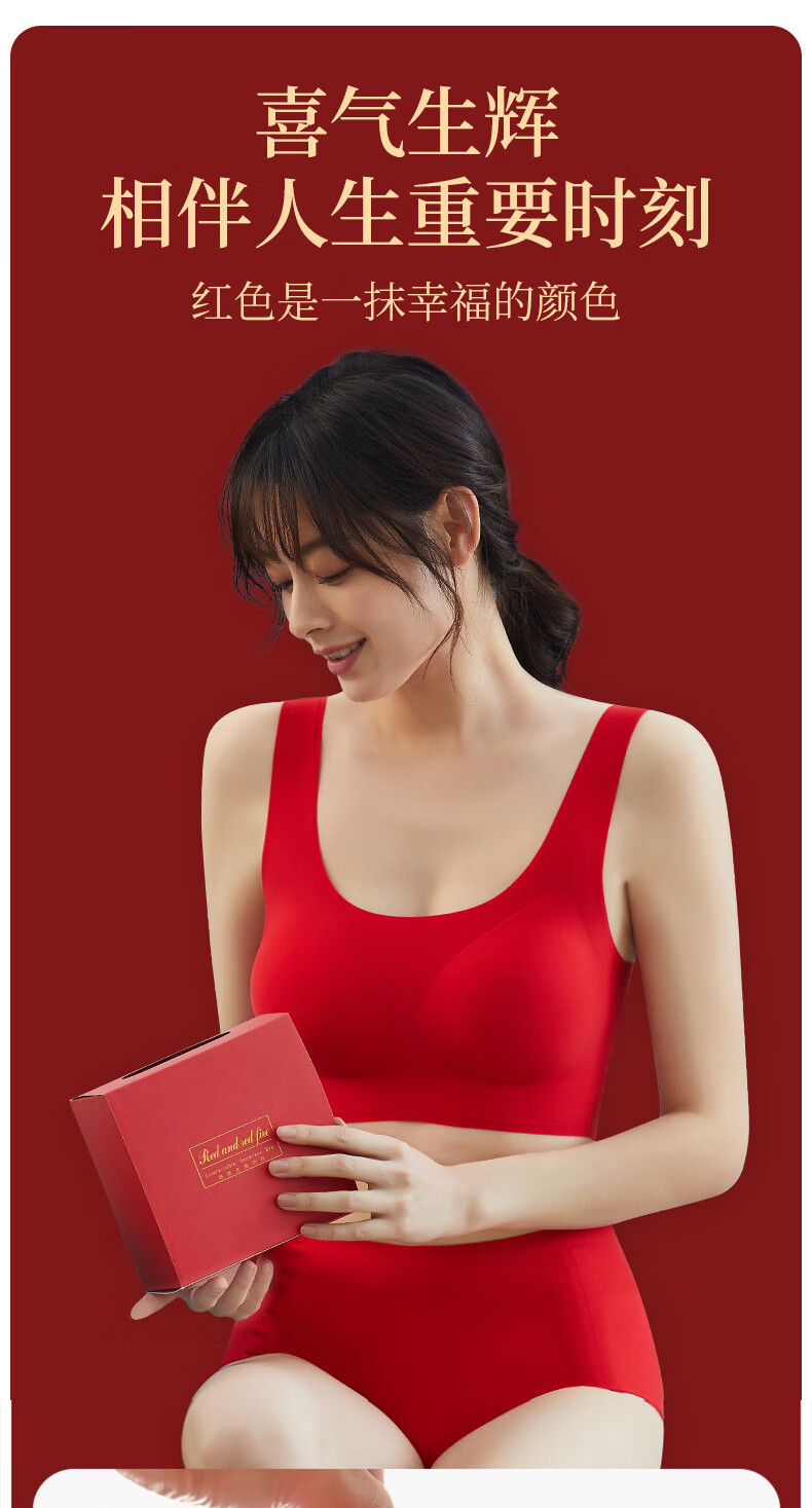 Langsha zodiac year underwear women's bra and panties set year of the horse red gift box Qiji red wedding no steel ring seamless bra
