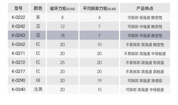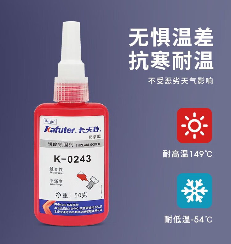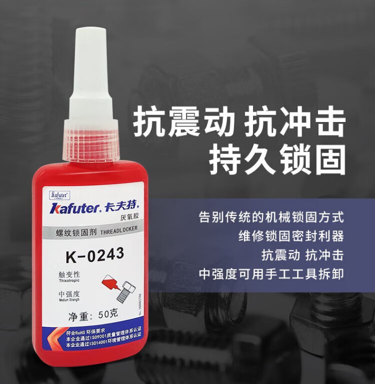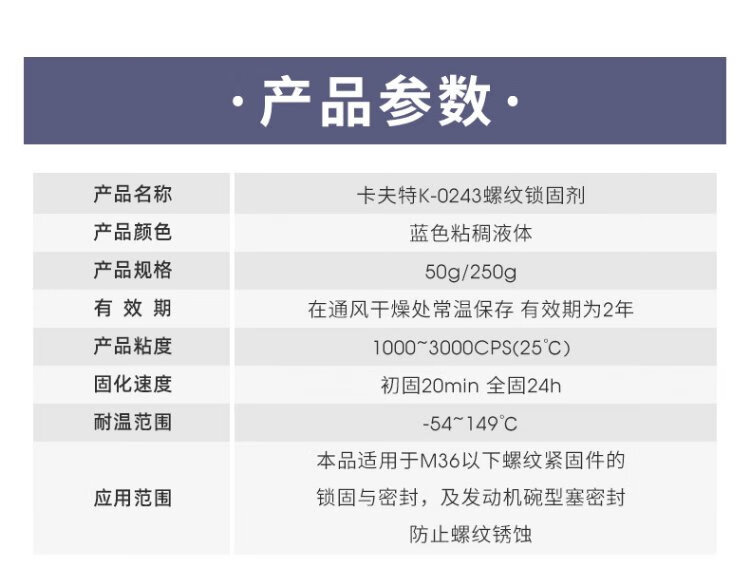 Kafter 243 screw glue anaerobic glue K-0243 thread locking agent medium strength sealing one-component M6-M36 bolt anaerobic strong glue blue 50g