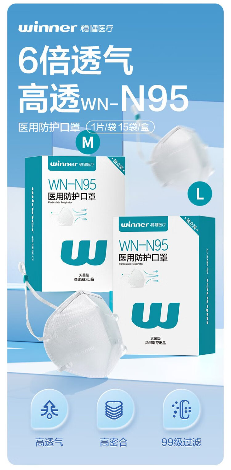 Robust medical protective mask N95 L size 15 pieces sterilization grade individually packaged five-layer protection anti-allergy anti-dust haze