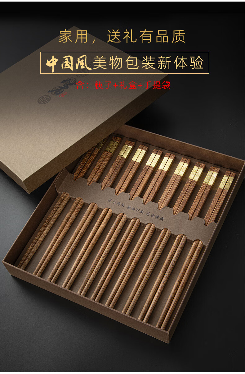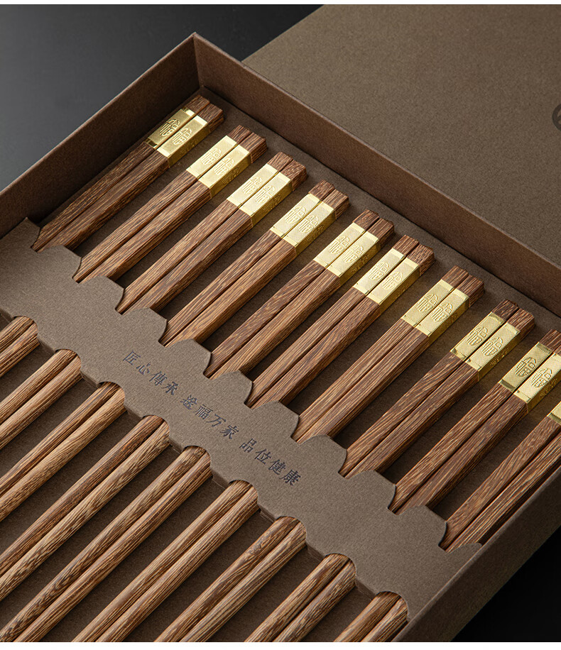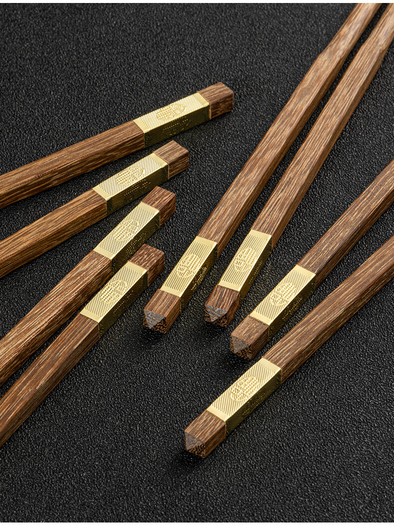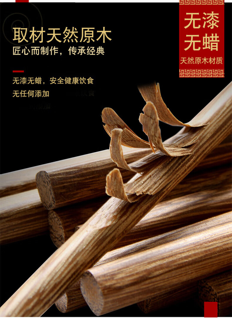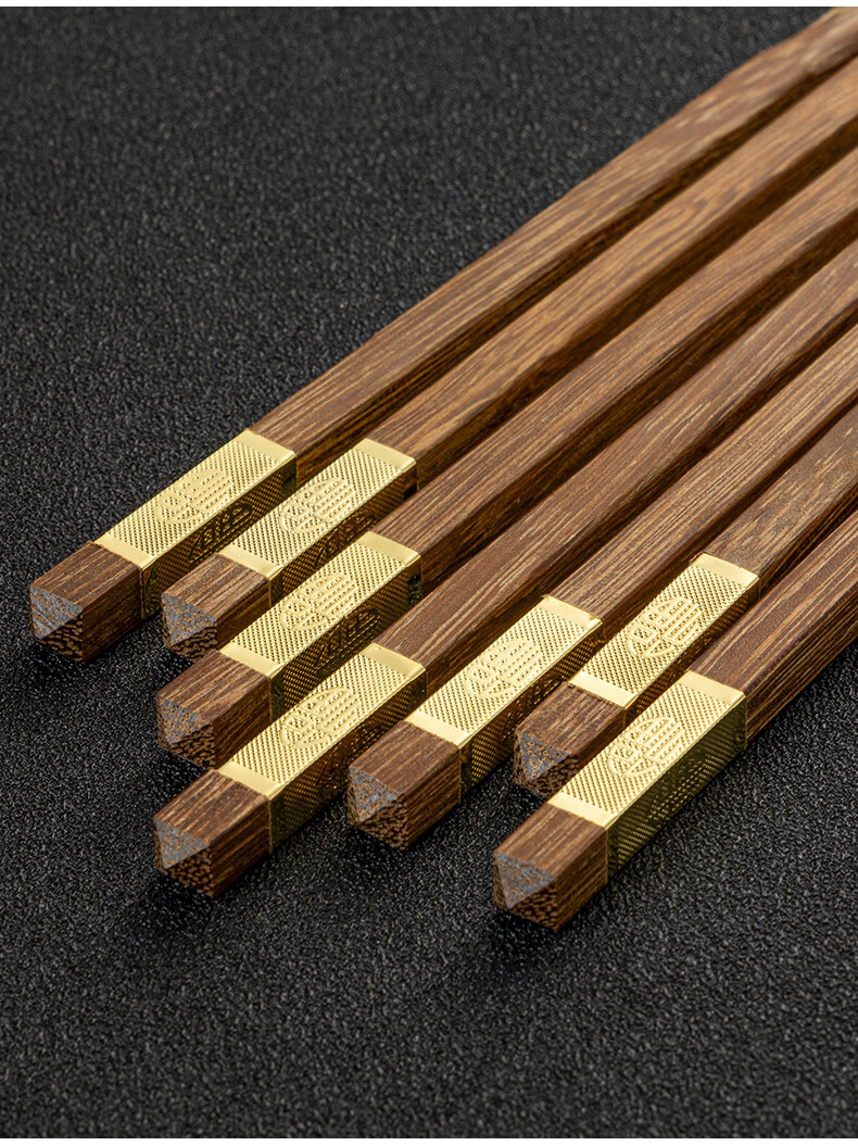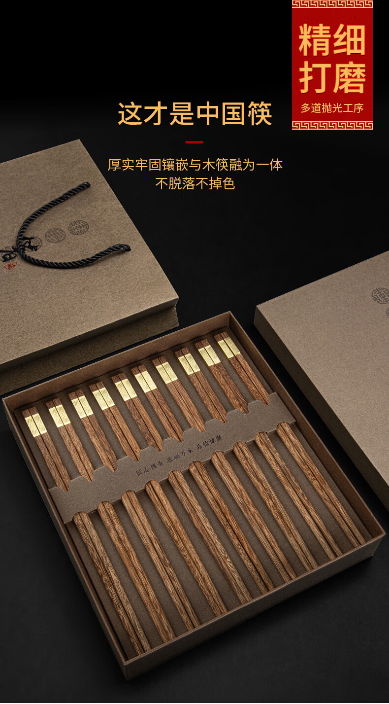 Thousand-year-old lovewood chicken wing wood Chinese chopsticks with golden blessing no paint and no wax household chopsticks gift box 10 pairs KZ0279