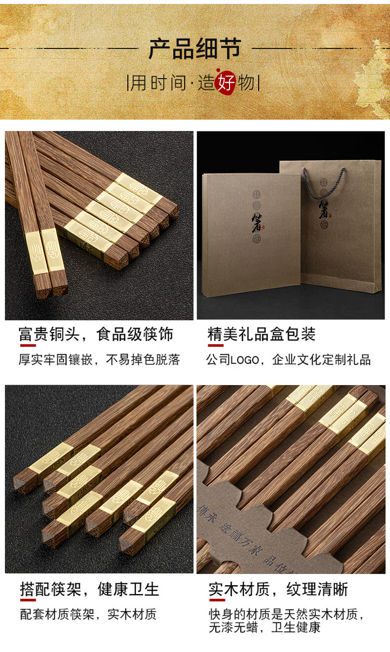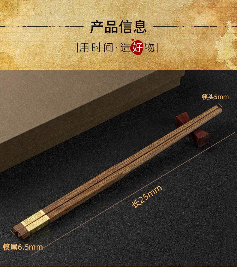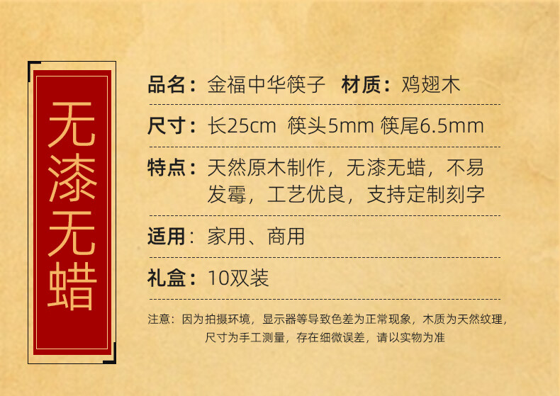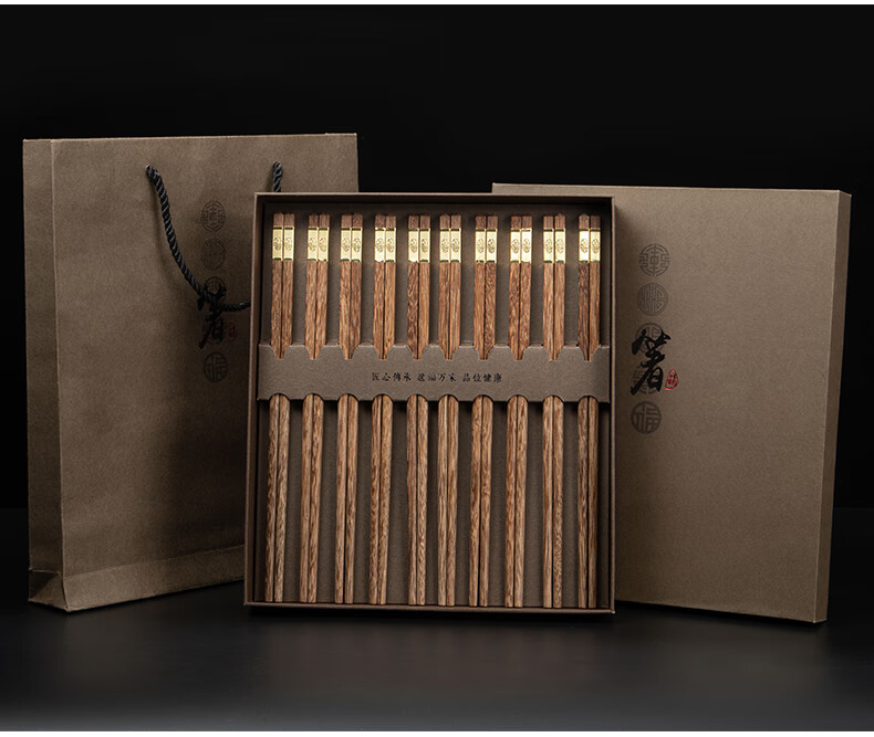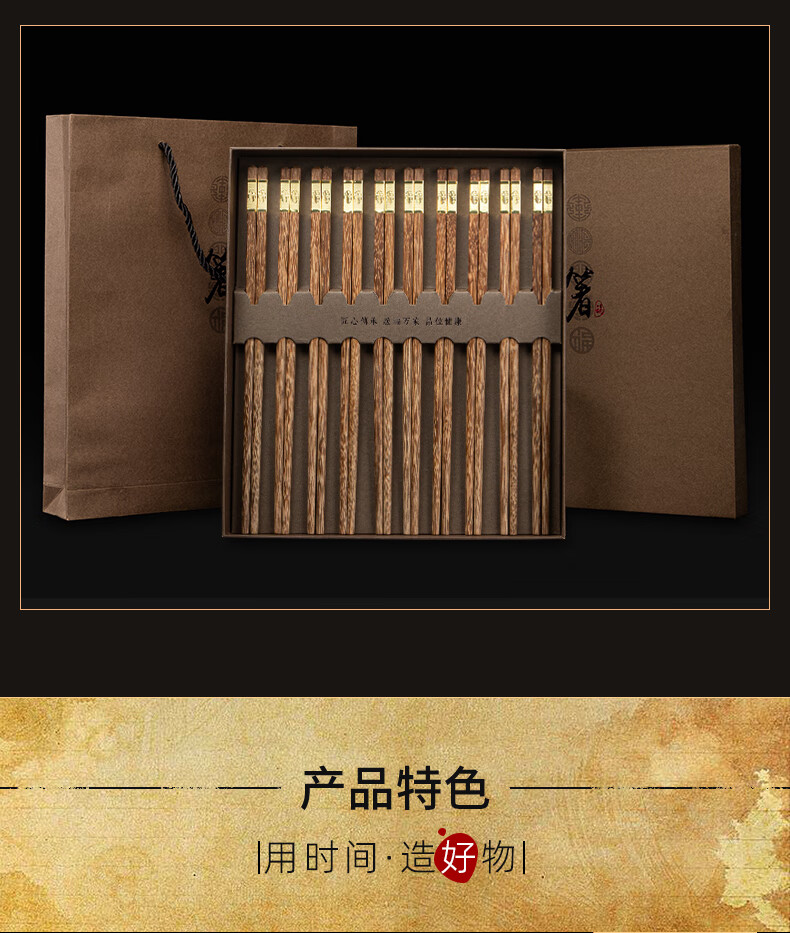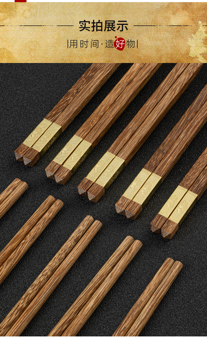 Thousand-year-old lovewood chicken wing wood Chinese chopsticks with golden blessing no paint and no wax household chopsticks gift box 10 pairs KZ0279