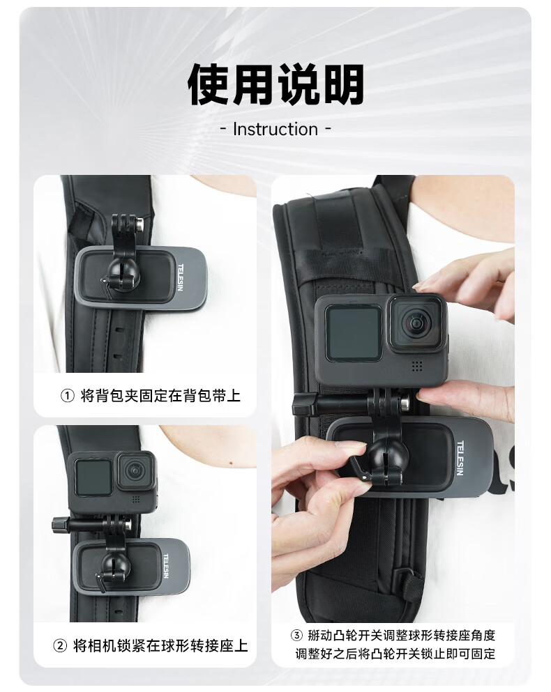 TELESIN (Taixun) action camera backpack clip DJI action6/5pro 4 magnetic backpack clip gopro13 backpack clip bracket insta360 acepro2 backpack clip