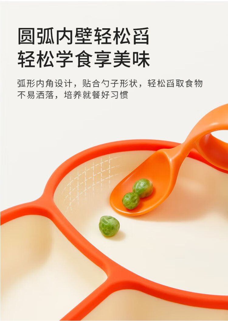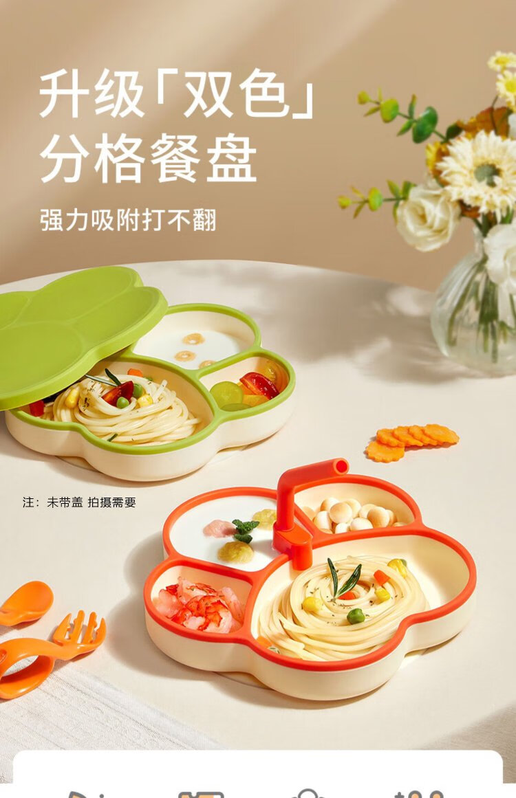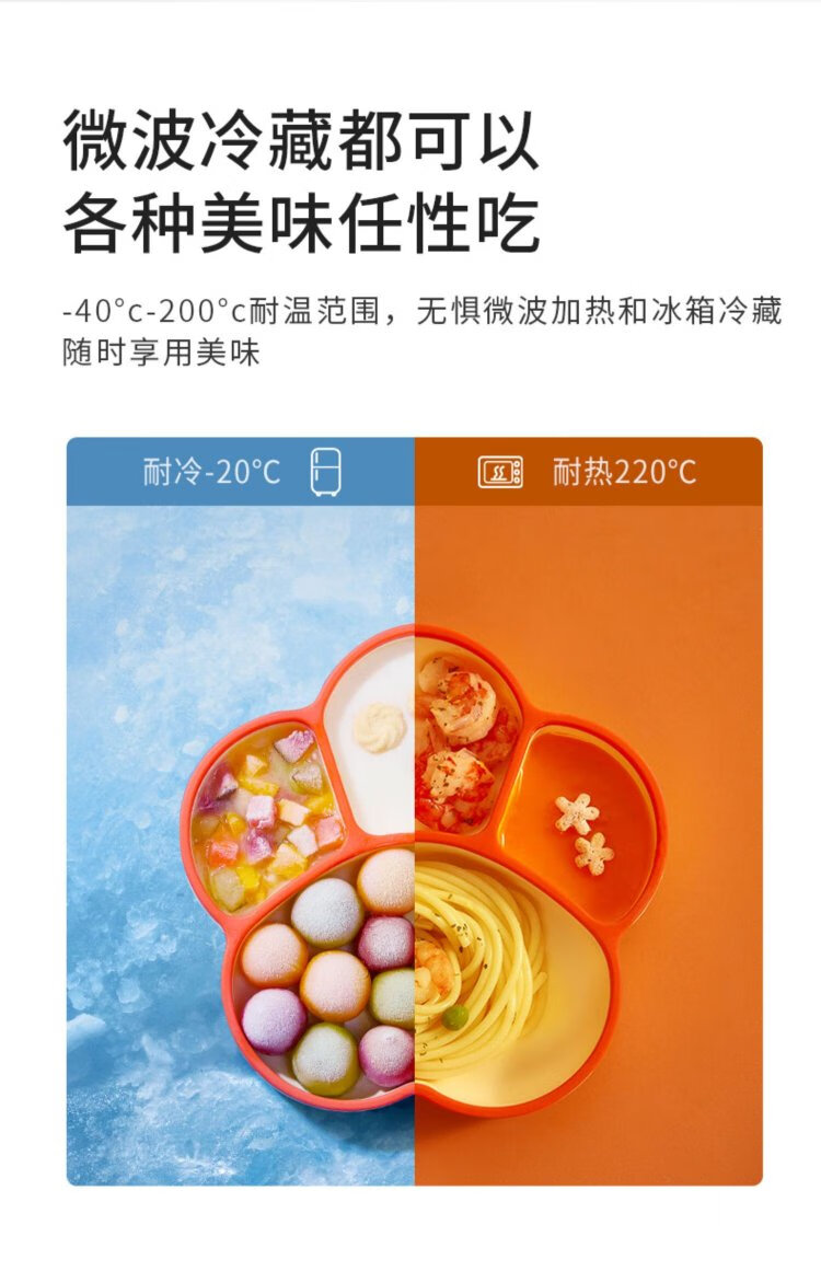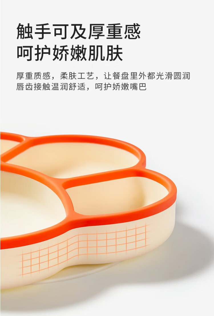 COOKSS baby dinner plate silicone baby learning to eat compartments children's tableware food bowl dinner plate with suction cup double orange