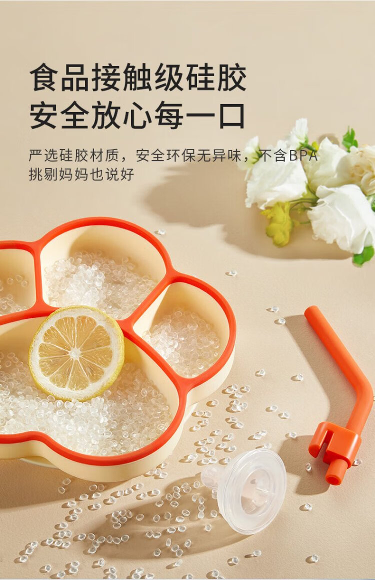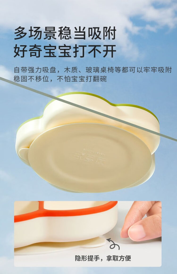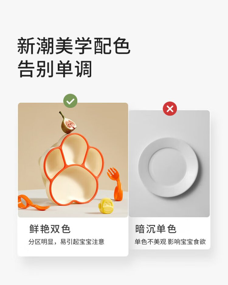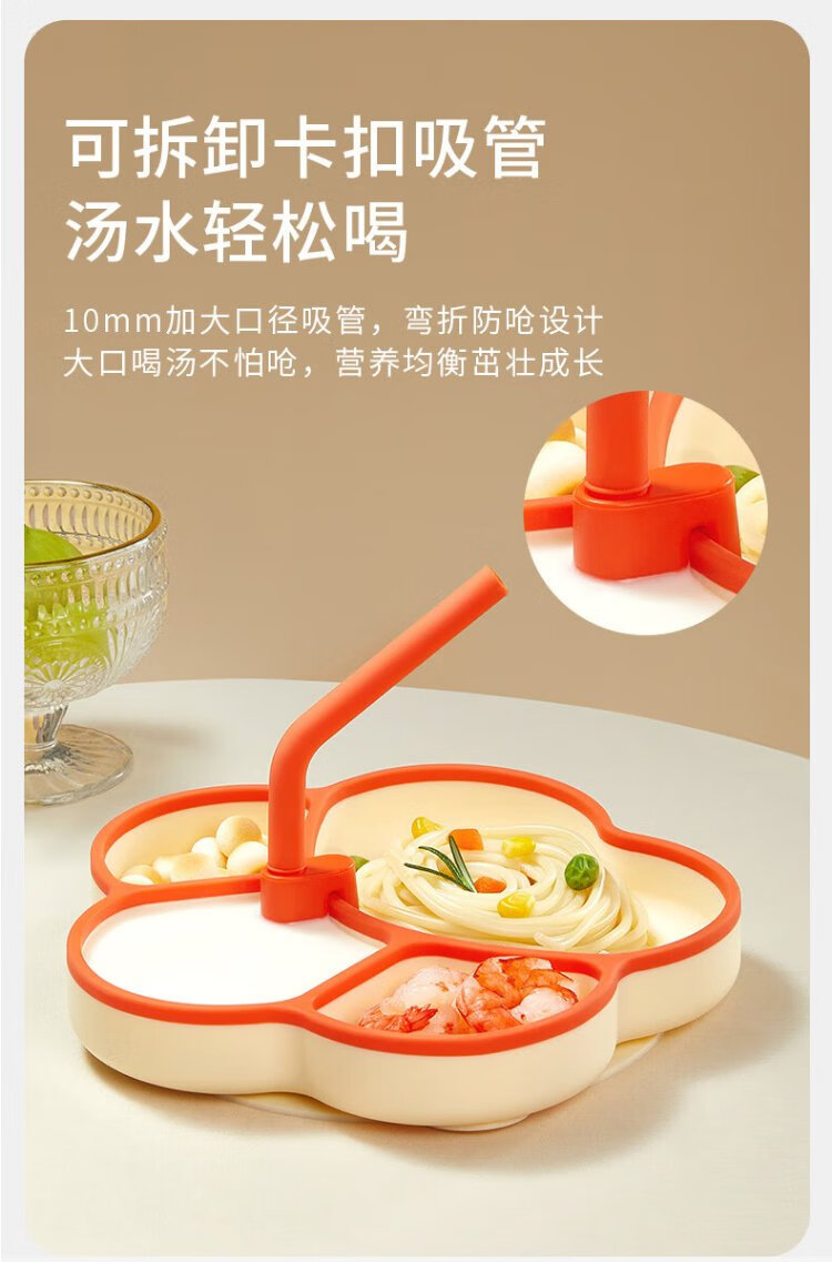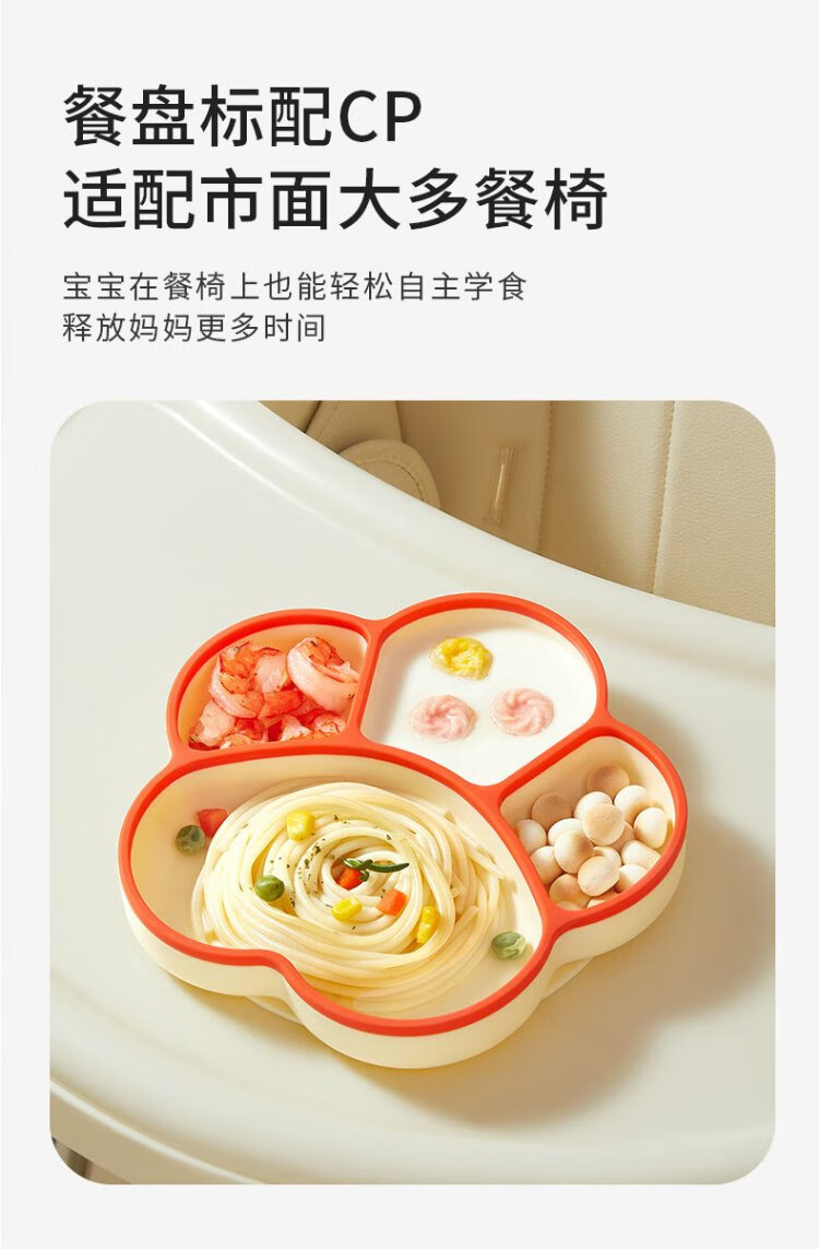COOKSS baby dinner plate silicone baby learning to eat compartments children's tableware food bowl dinner plate with suction cup double orange