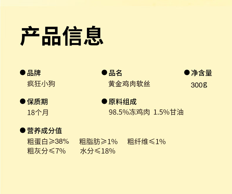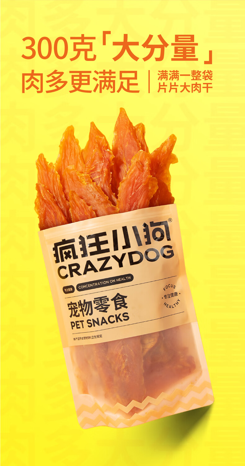 Crazy Puppy Pet Dog Snacks Teddy Young Adult Dog Molars Pure Meat Jerky Strips Golden Chicken Soft Shreds 300g