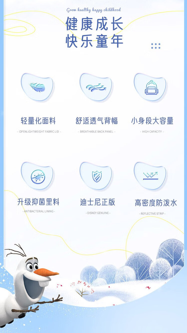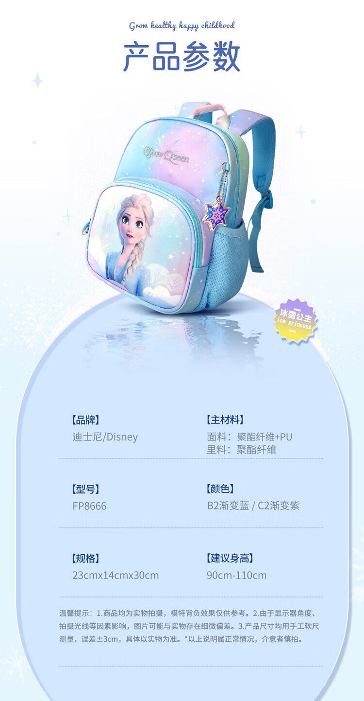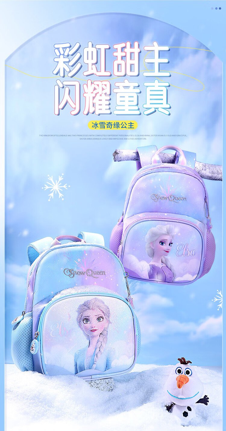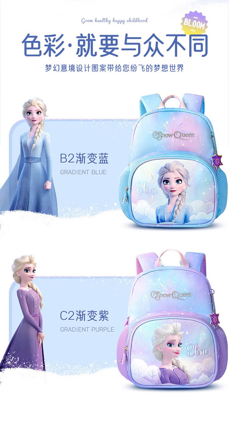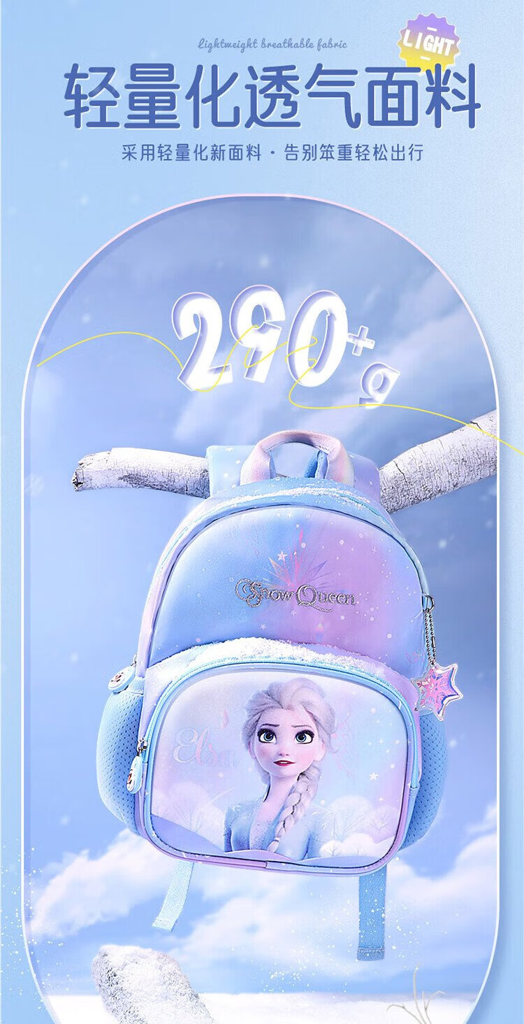 Disney (Disney) Kindergarten School Bag 3-6 Years Old Lightweight Cute Good-looking Small Bag Breathable Antibacterial Girls Backpack Elsa Princess Blue