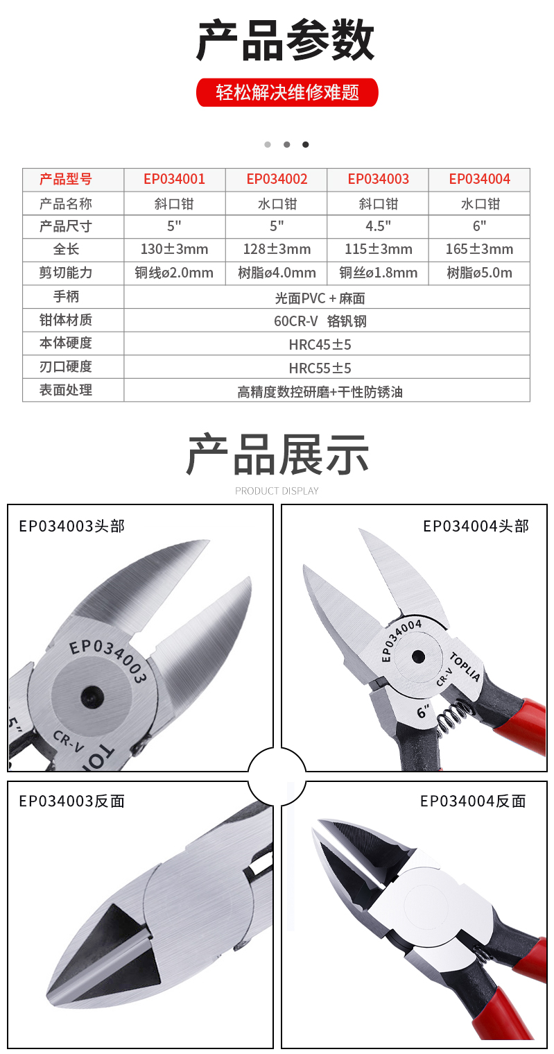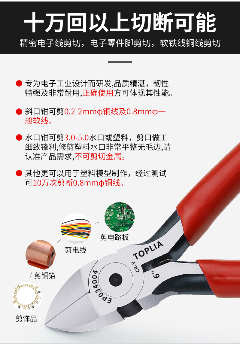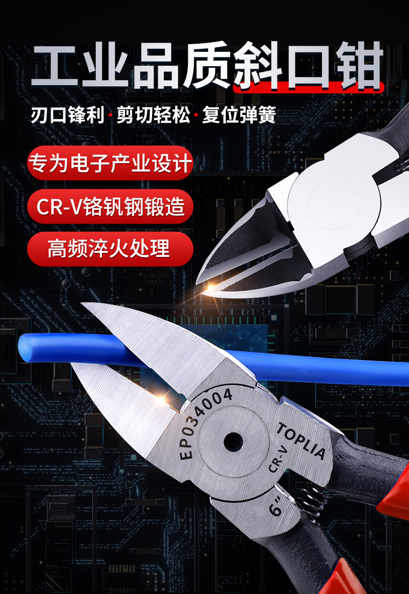 TOPLIA industrial nozzle pliers 6 inches electronic pliers scissors diagonal pliers 165mm professional grade EP034004