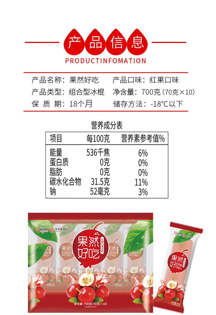 Zhongjie Ice Cream is really delicious, hawthorn and red fruit flavored popsicles 70g*10 pieces, affordable ice cream, fresh ice cream