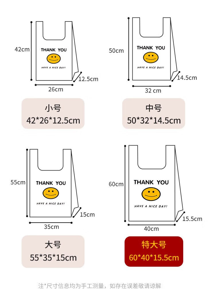 Youao plastic bags 40*60cm/100 pieces vest bag large shopping bag food bag convenience bag vest bag