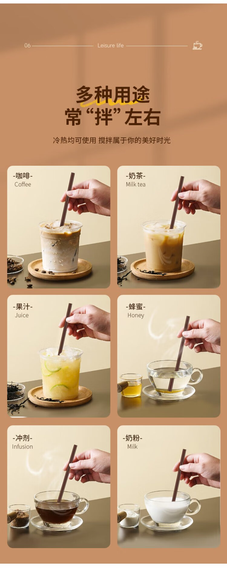 Baicaoyuan disposable coffee stirring stick 18cm hot coffee thin plastic straws food grade 200 pieces individually packaged