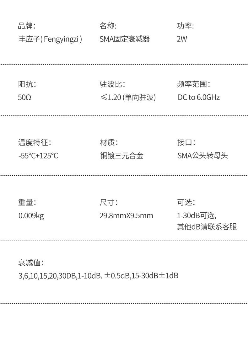 Fengyingzi SMA fixed attenuator 2W DC-6GHz 6db RF coaxial attenuator male to female FYZ-SMA6db