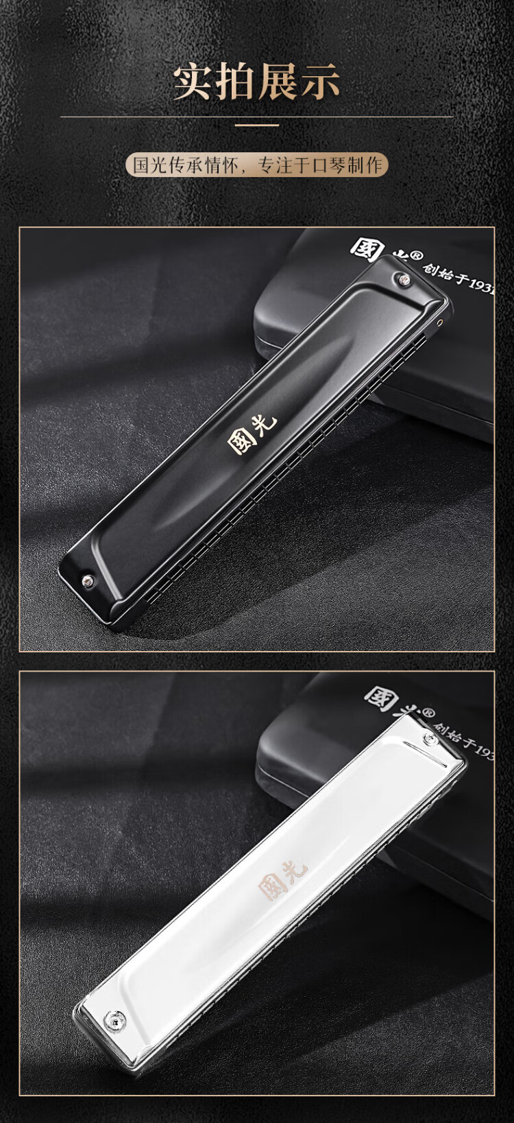 Guoguang 24-hole National Dream performance-grade polyphonic harmonica in D key (Athens black, with playing instructions) in D key