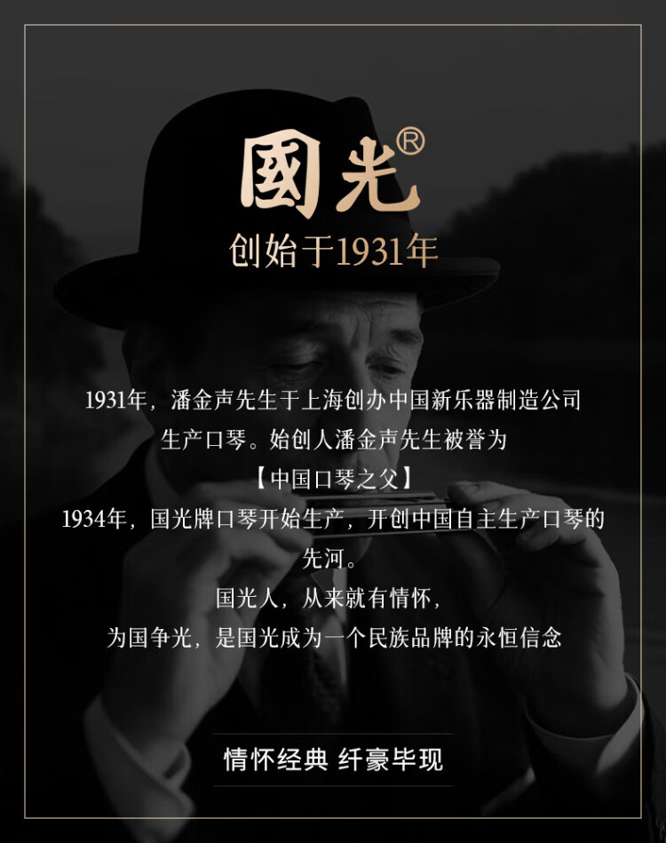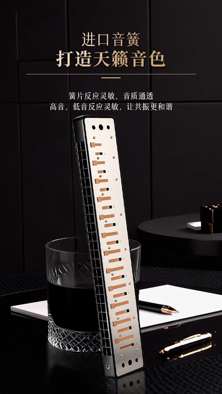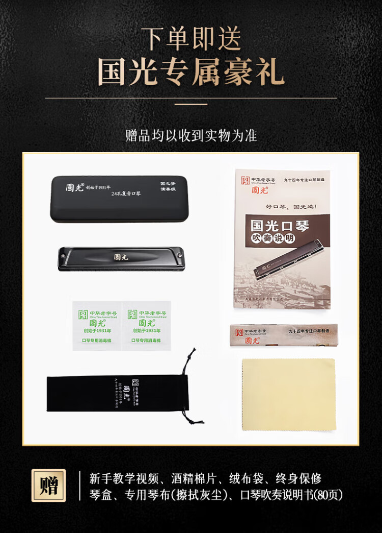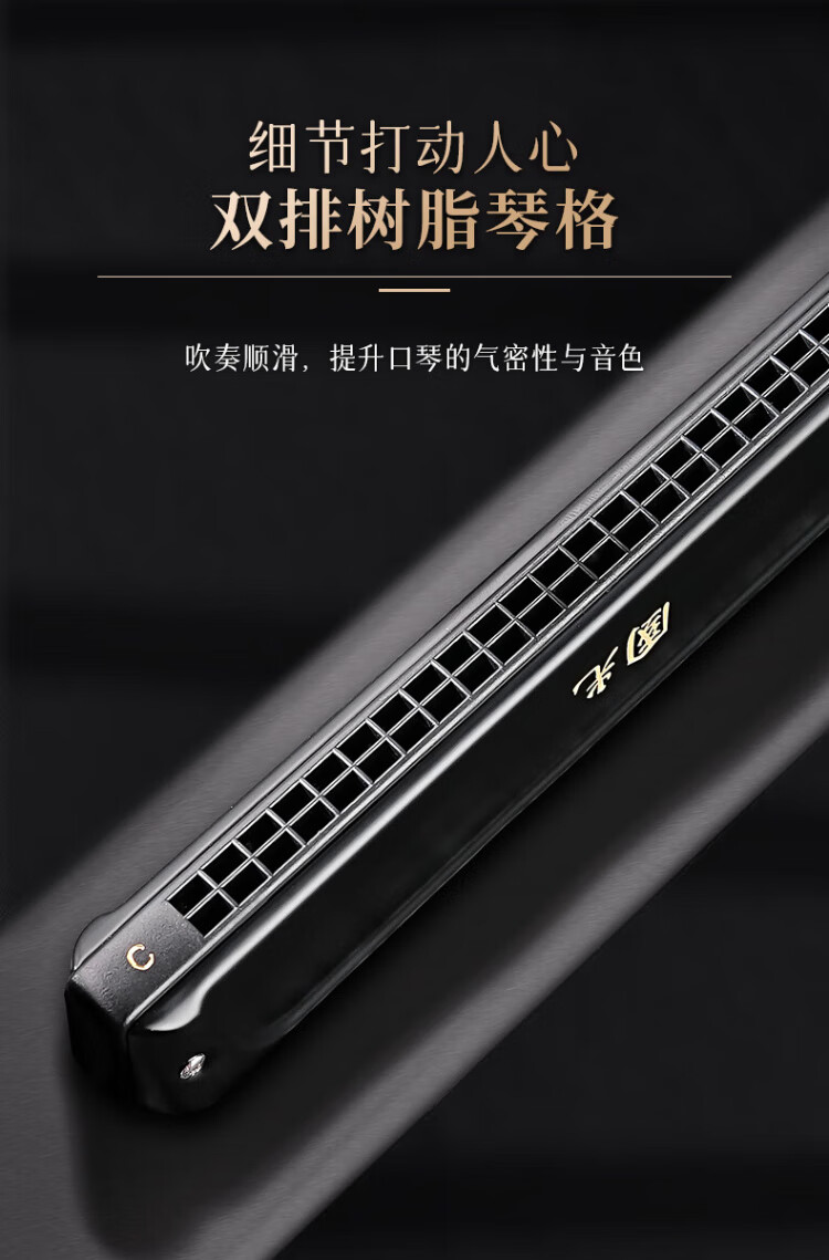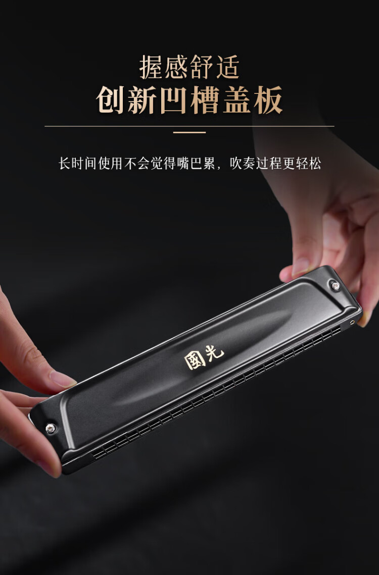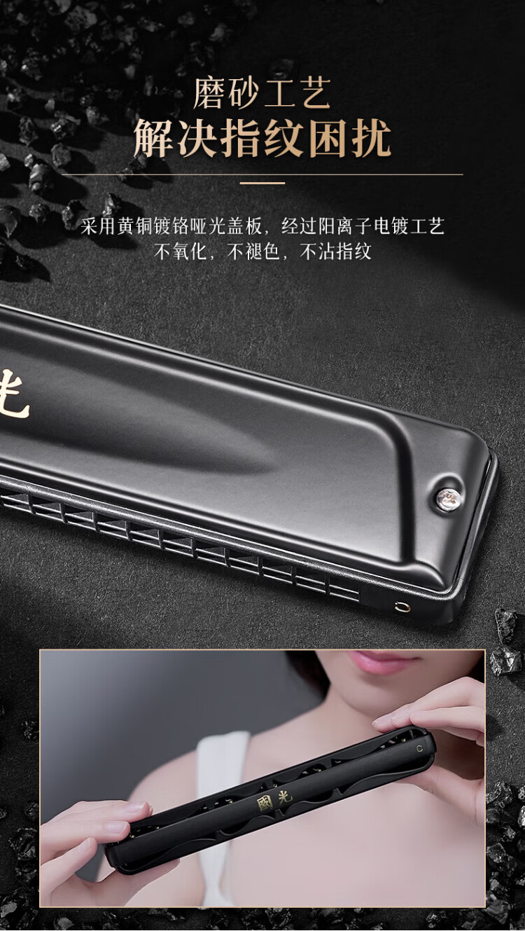 Guoguang 24-hole National Dream performance-grade polyphonic harmonica in F key (Athens black, with playing instructions) in F key