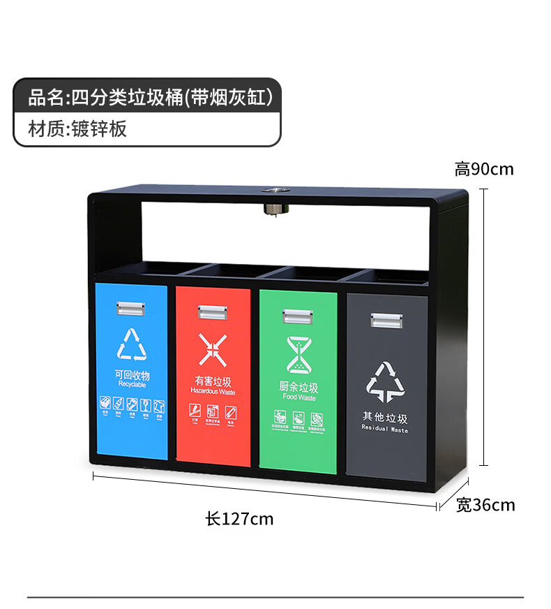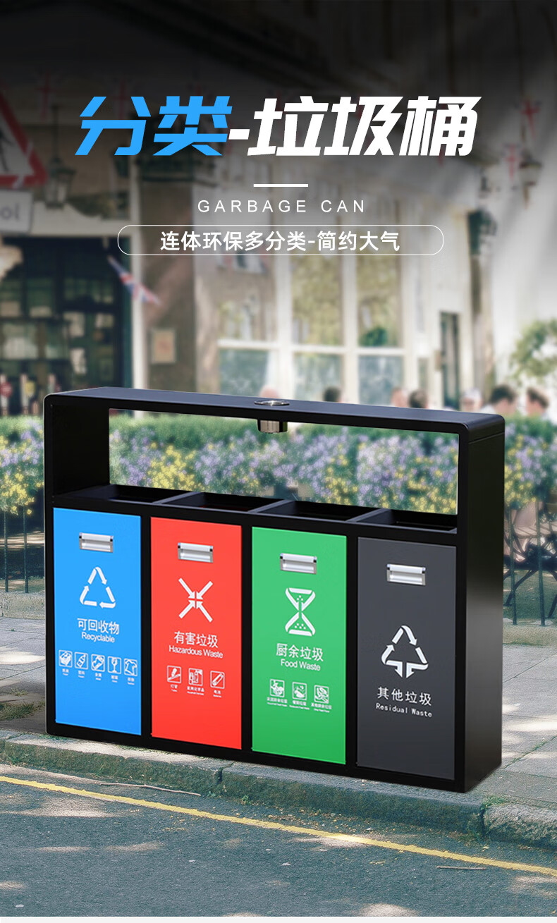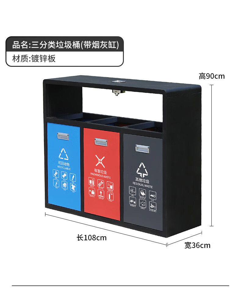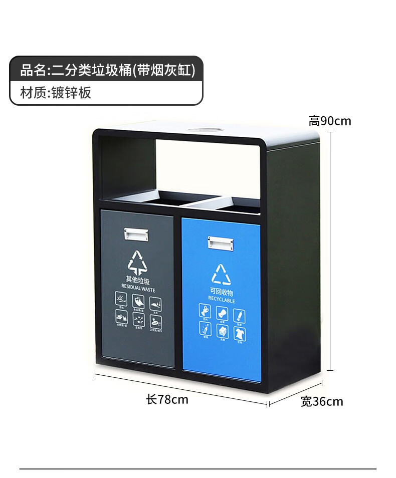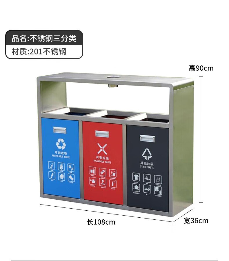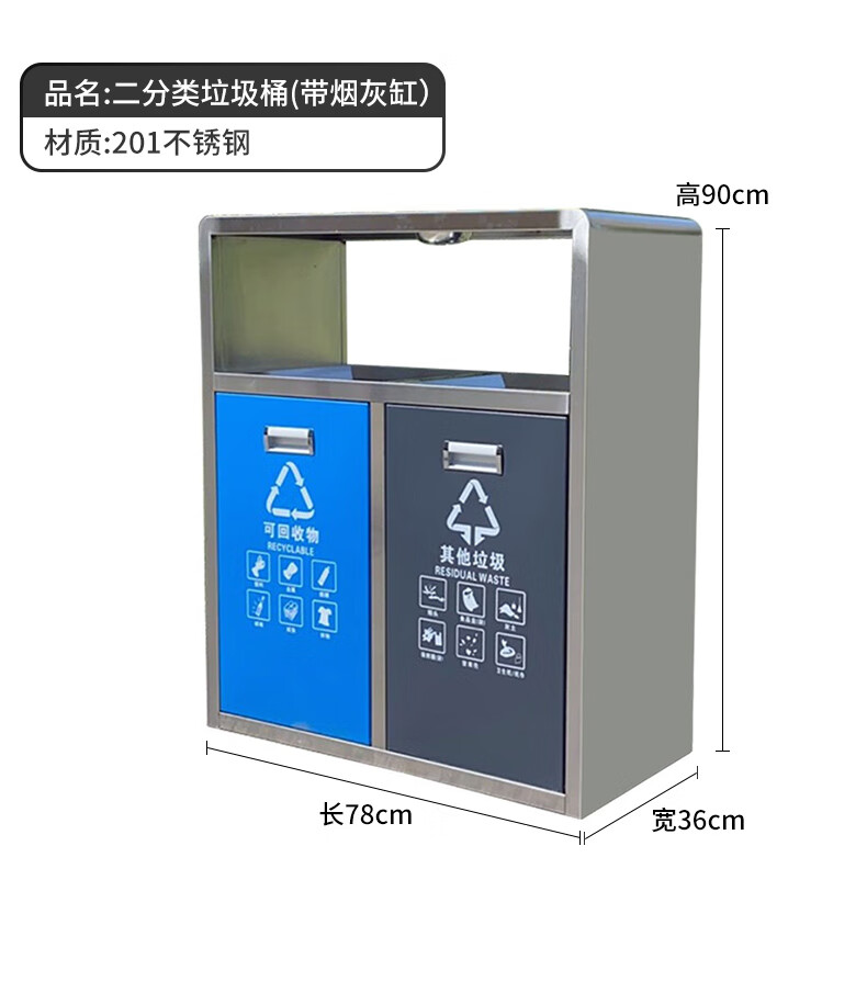 Shukou (Supercloud) double classification stainless steel outdoor trash can sanitation peel box street community outdoor scenic area bucket large garbage three classification (with ashtray)