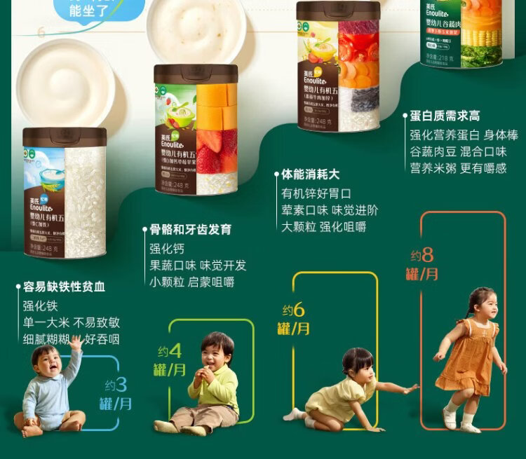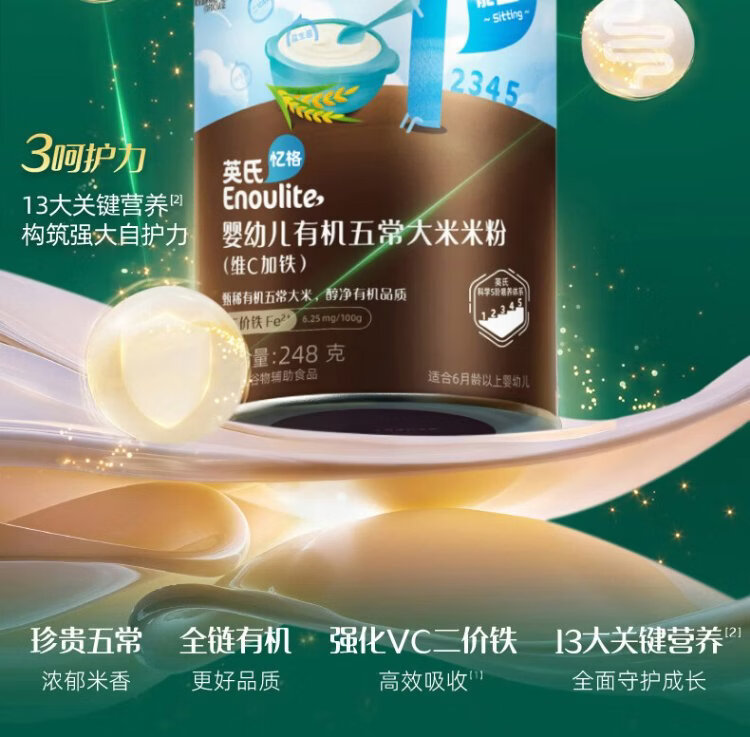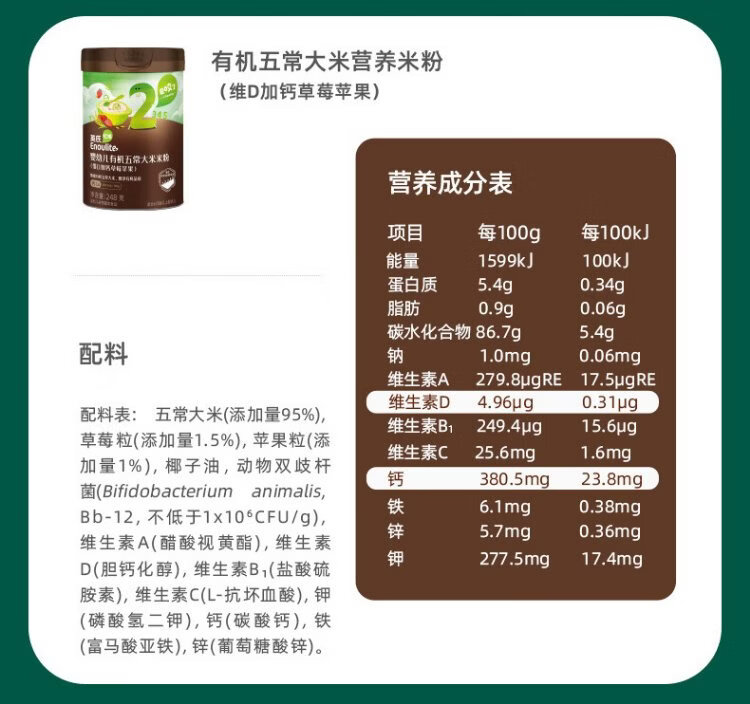 Engnice Infant Organic Vitamin D Plus Calcium Strawberry Apple Flavor 248g Nutritious Rice Powder Baby Food Complementary Rice Powder 7 Months+