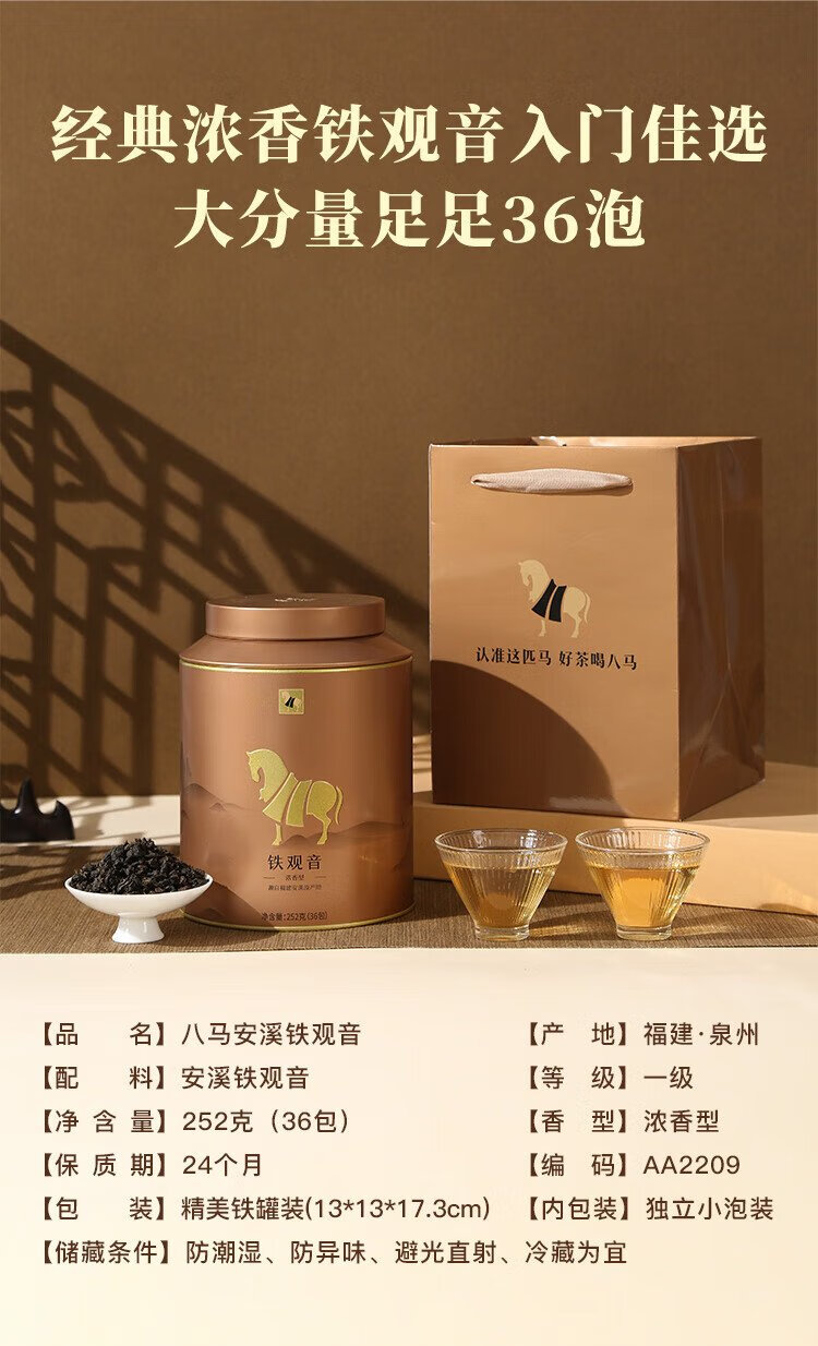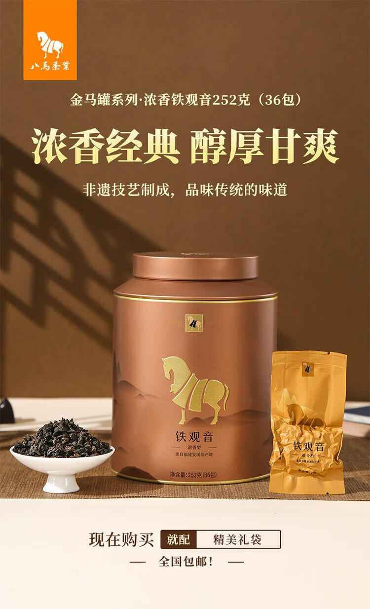 Bama Tea Industry Oolong Tea Golden Horse Can Anxi Tieguanyin Strong Flavor Type 1st Grade 252g Canned Tea for Your Own Drink