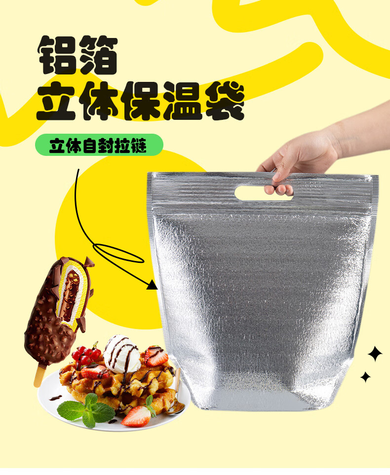 Xingyue Blue Three-dimensional Insulation Bag Self-sealing Zipper Large Aluminum Foil Insulation Refrigeration Preservation Fresh Cold Insulation Hot Takeaway Packing Bag