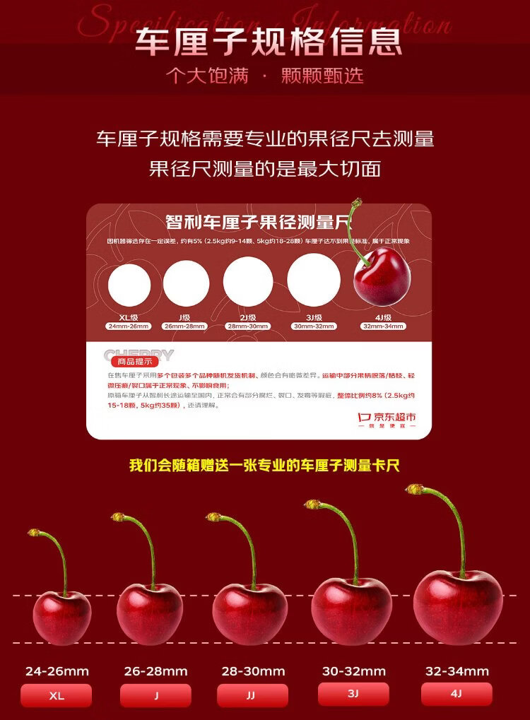 Jingxiansheng Chilean imported cherries 3J grade 5 catties gift box with fruit diameter about 30-32mm New Year gift box with caliper