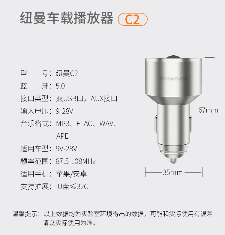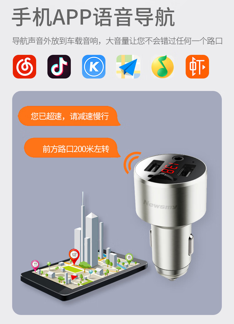 Newman (Newsmy) C2 Bluetooth 5.0 car MP3 player super fast charging car music AUX lossless suitable for Android and Apple