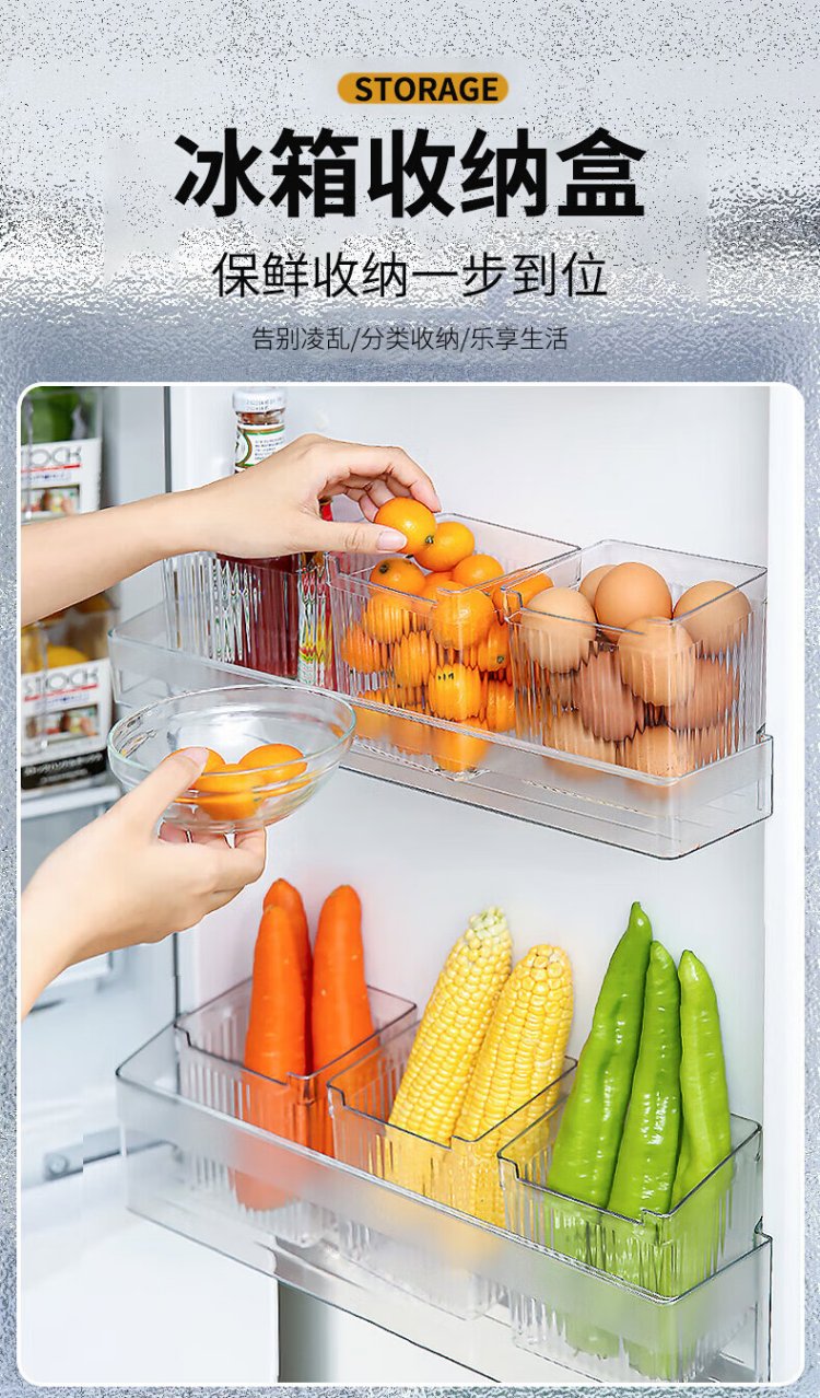 Dining General Refrigerator side door storage box 3-pack fresh-keeping box freezer inner storage rack storage box fresh-keeping artifact white