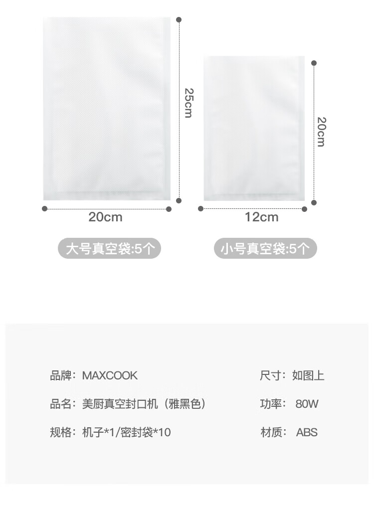 MAXCOOK sealing machine vacuum sealing machine plastic film snack packaging plastic sealing machine packaging machine SL-V2 (with 10 vacuum bags)