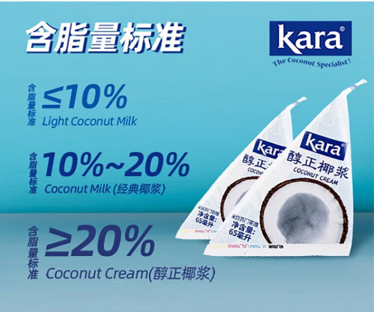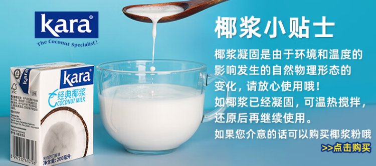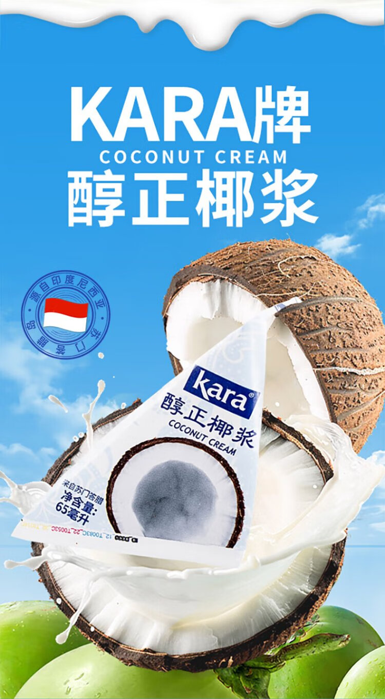 KARA brand pure and thick coconut milk 65ml refuses to add milk tea shop sago raw coconut latte dessert nasi lemak