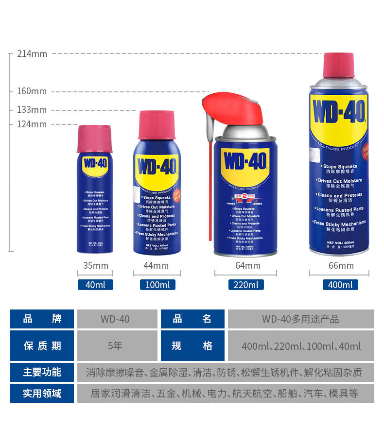 WD-40 multi-purpose metal curing agent/rust removal oil/machinery anti-rust lubricant/dehumidification/elimination of abnormal noise/zero pressure spray can Model 86440T 440ml 1 bottle