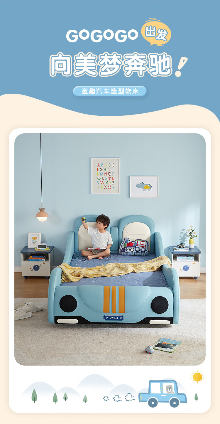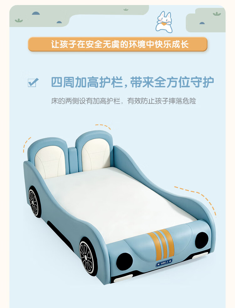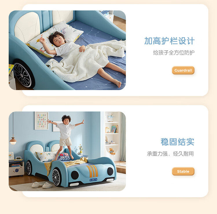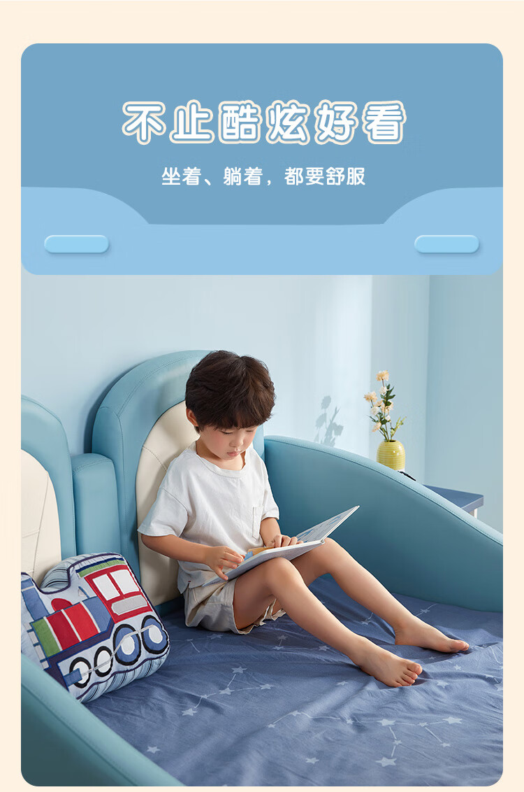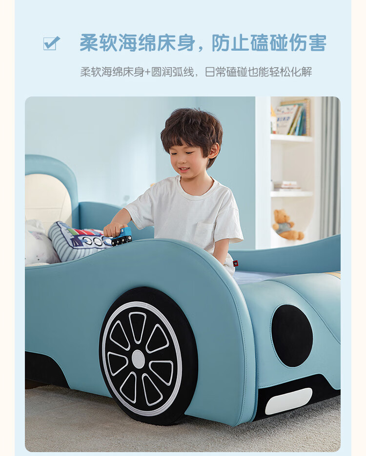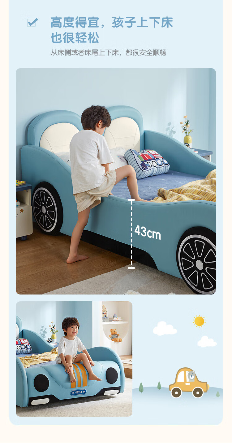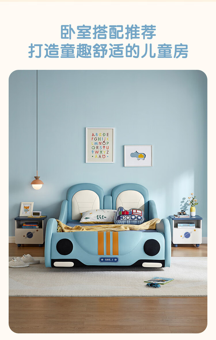 LINSY KIDS children's bed single bed modern simple cartoon guardrail children's room boy bed bed + mattress 1.2*2m