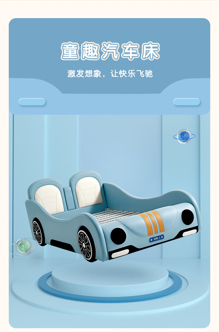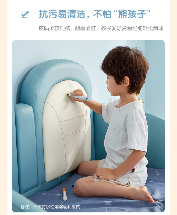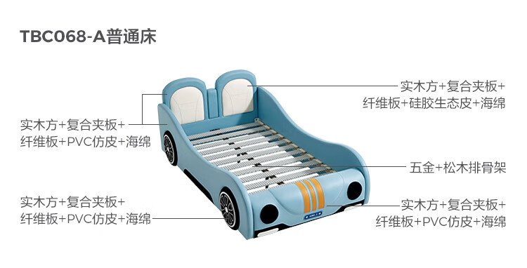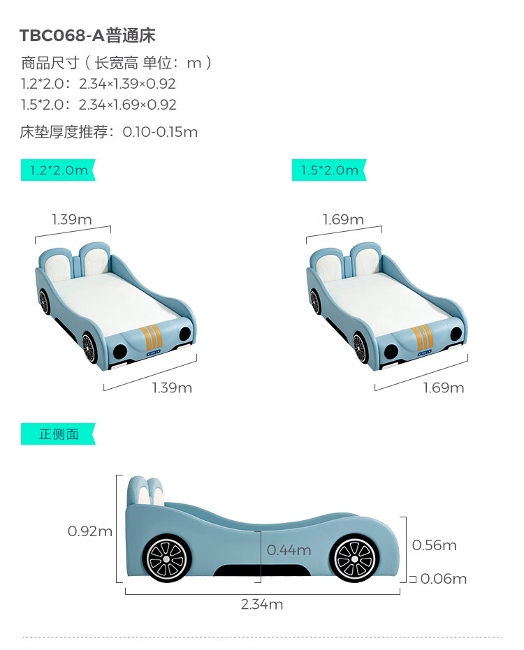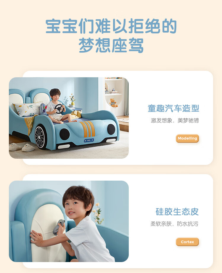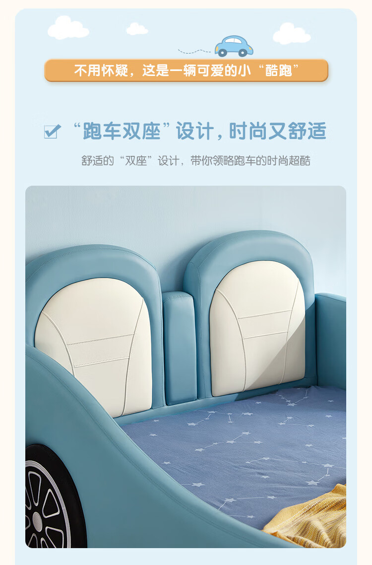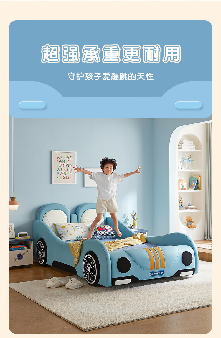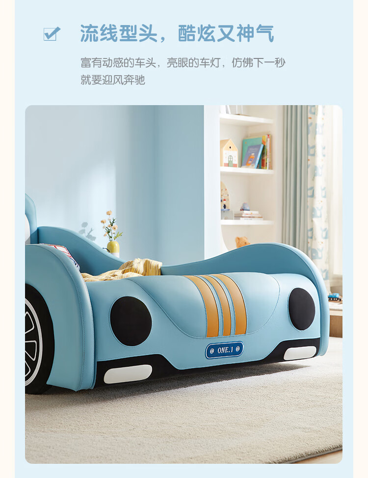 LINSY KIDS children's bed single bed modern simple cartoon guardrail children's room boy bed bed + mattress 1.2*2m