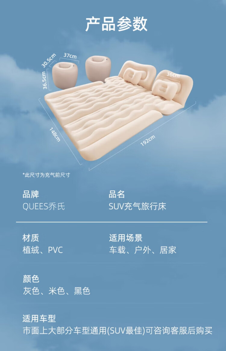 Joe's SUV car inflatable bed car trunk air mattress in-car sleeping artifact rear sleeping pad travel bed