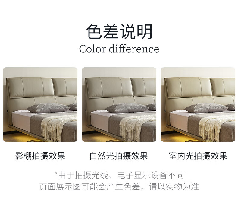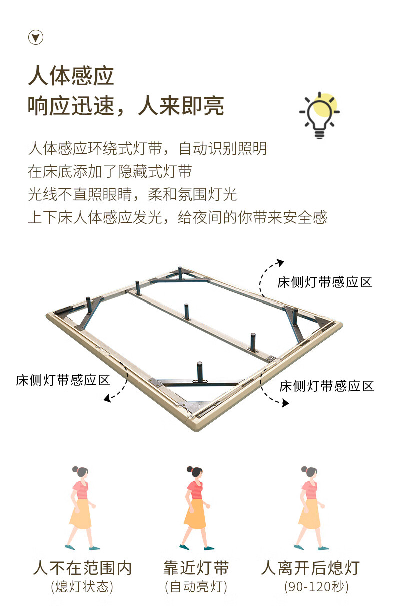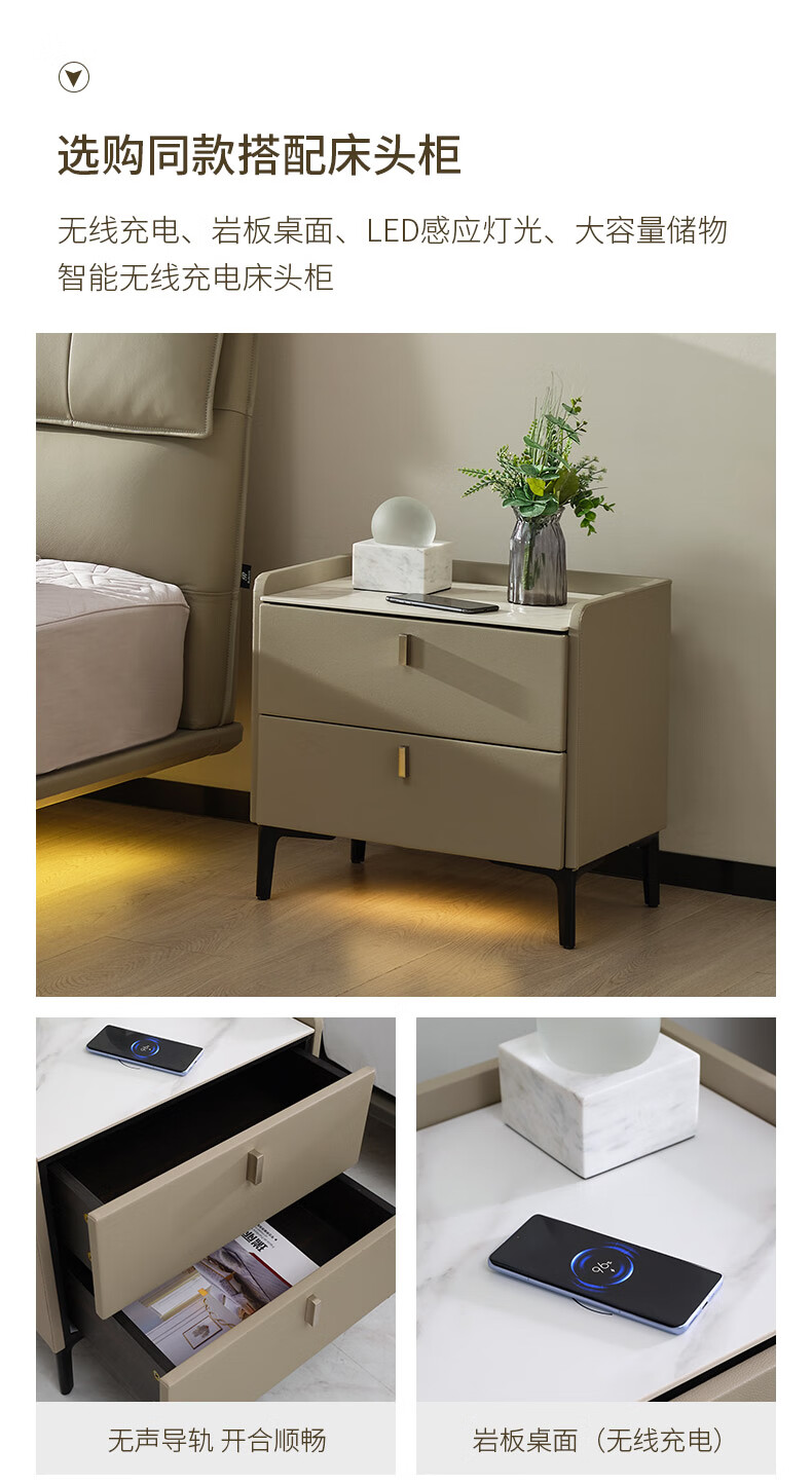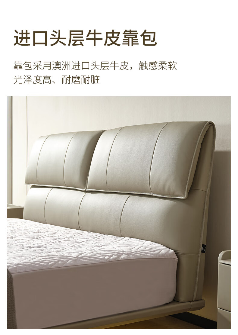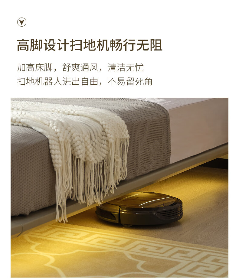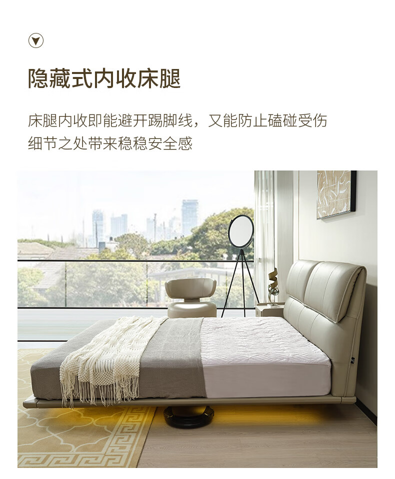 Mousse (de RUCCI) Leather Bed Suspended Bed Double Master Bedroom Queen Marriage Bed Dark Gray Suspended Bed-Light Strip Style 1.8*2m