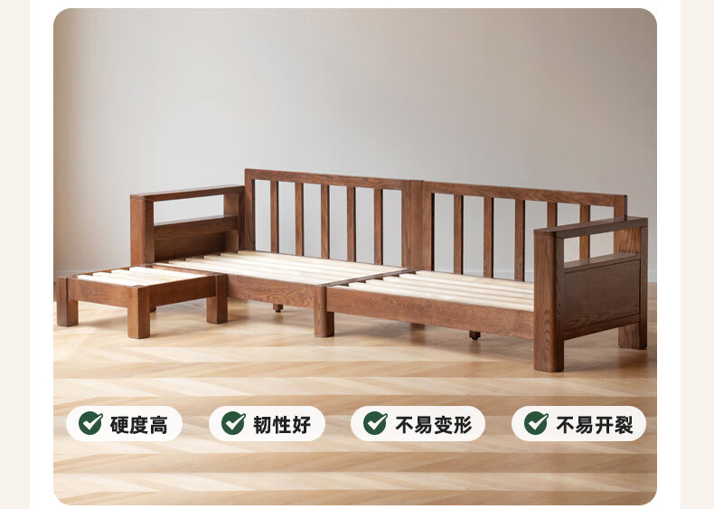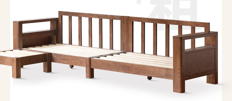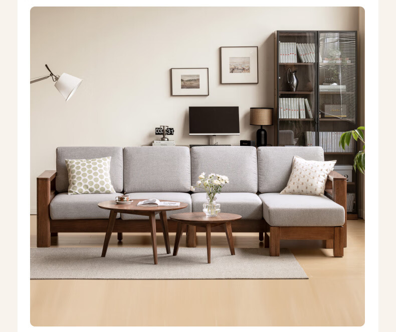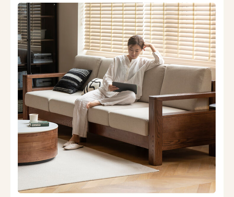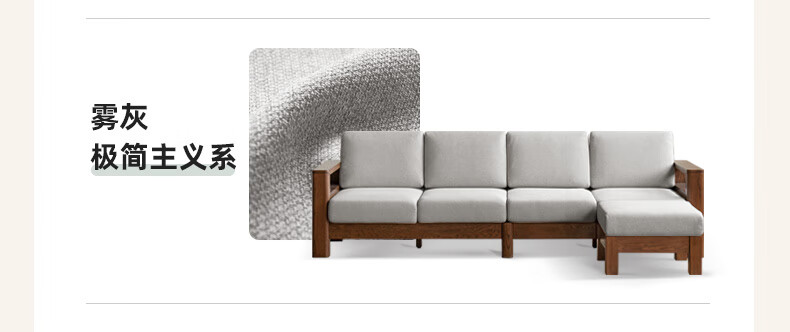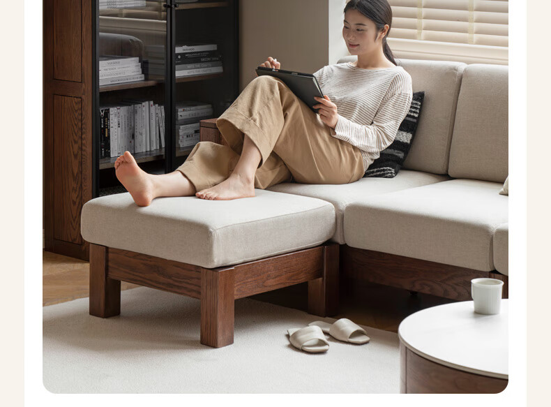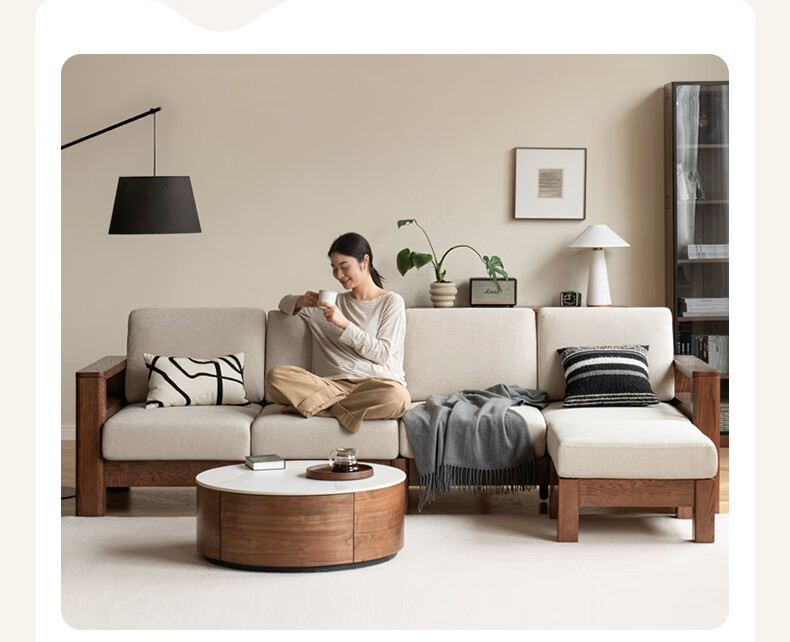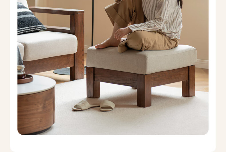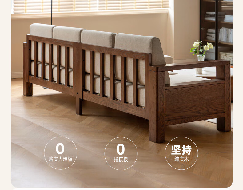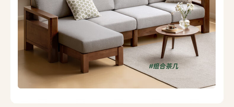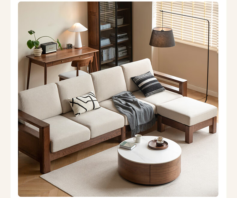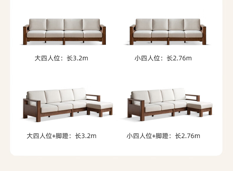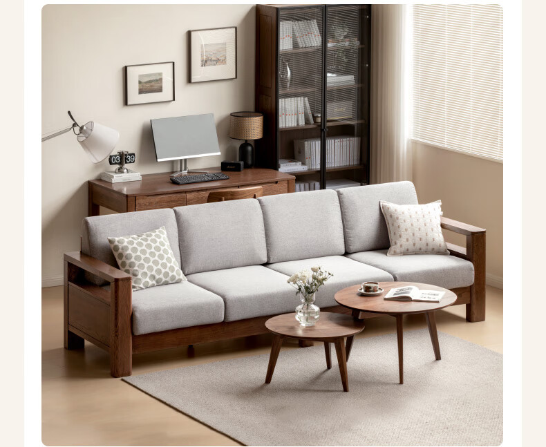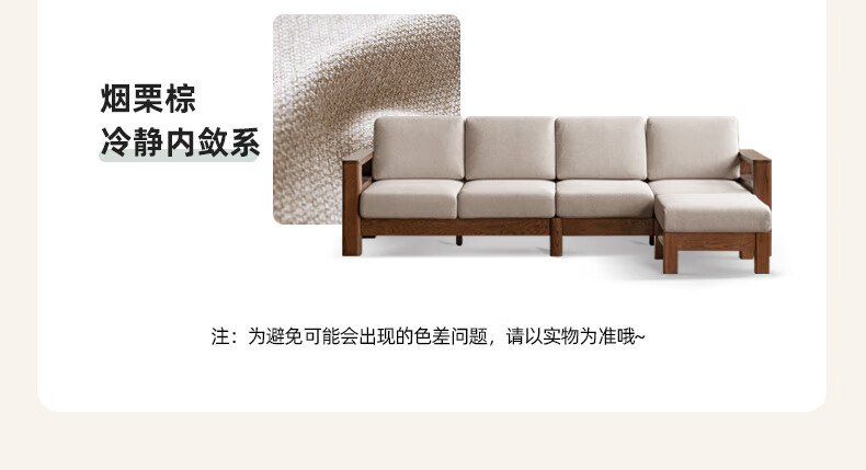 Genji Wood Language Sofa New Chinese Style Sofa Modern Simple Living Room Fabric Sofa Large Four Persons + Footstool Walnut Color