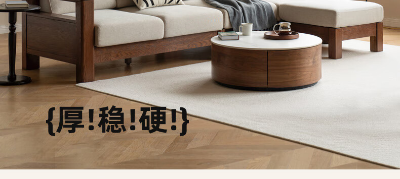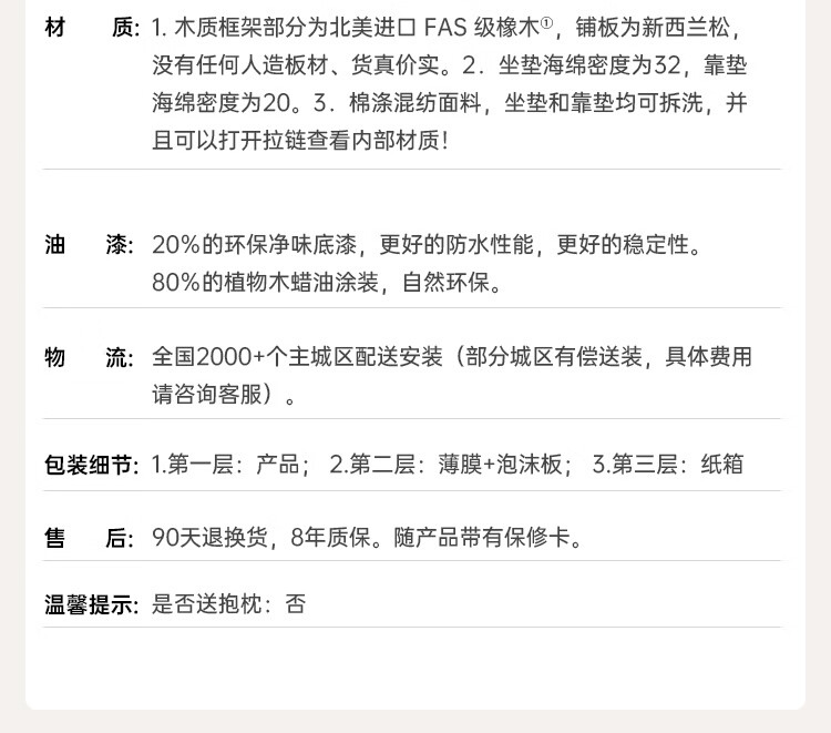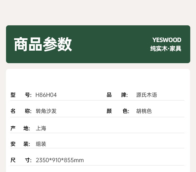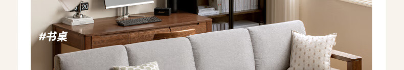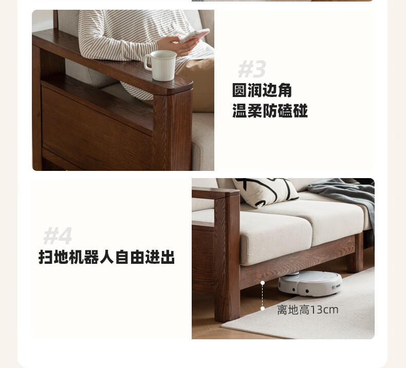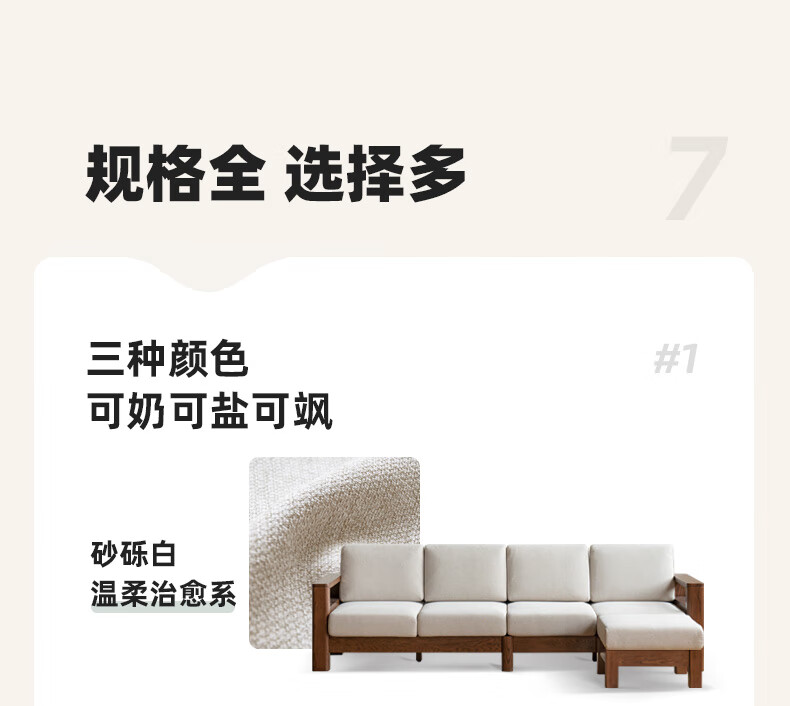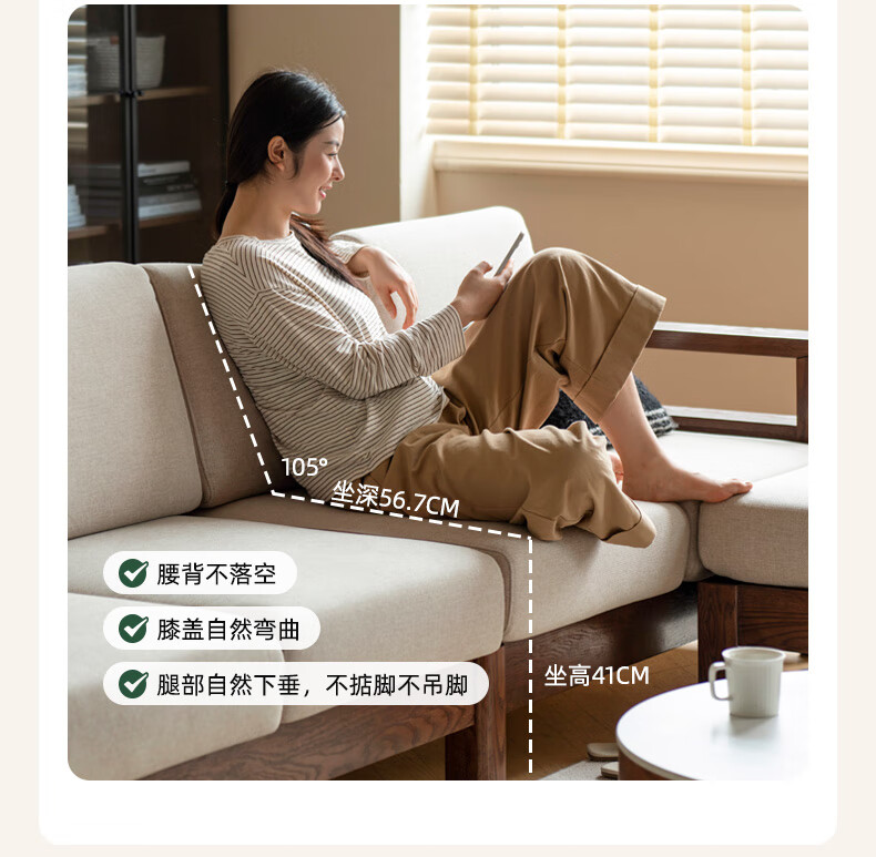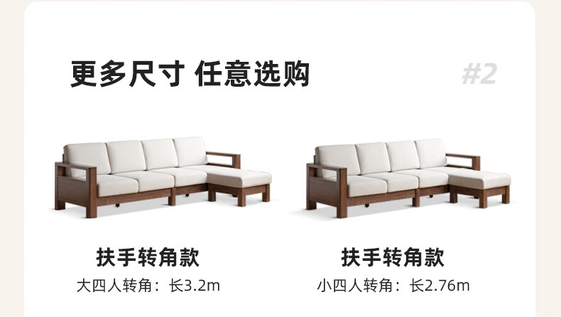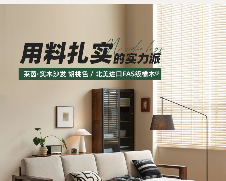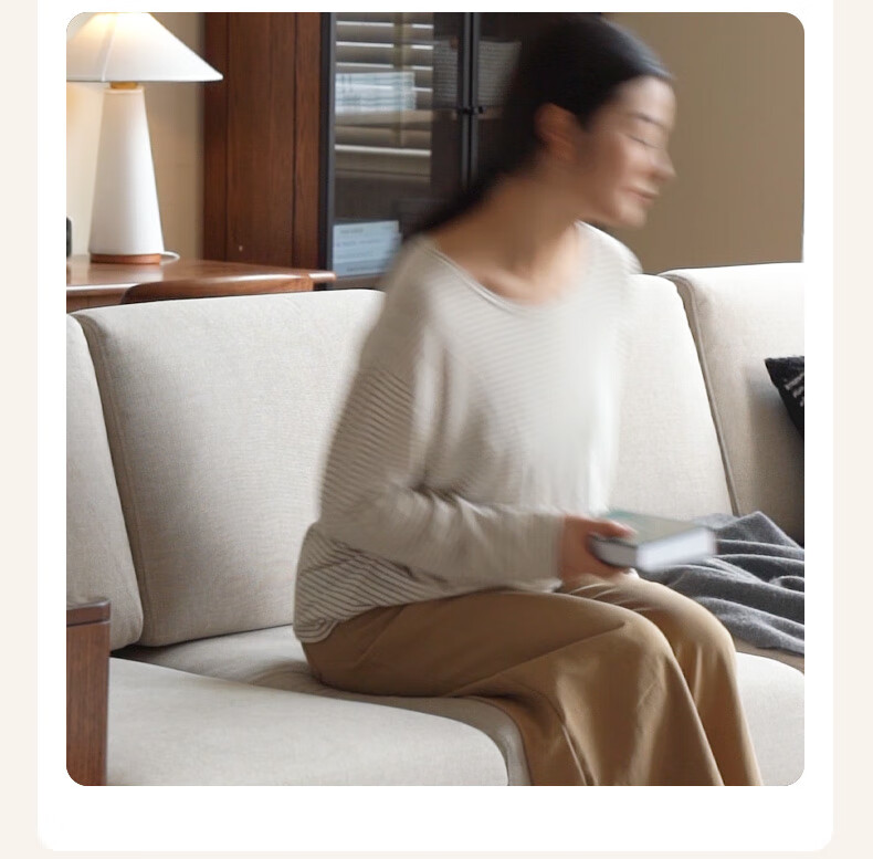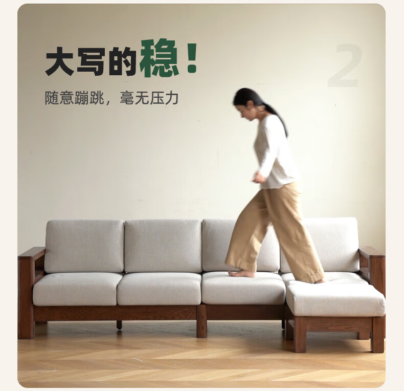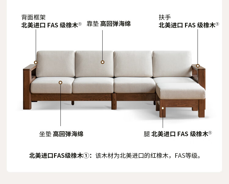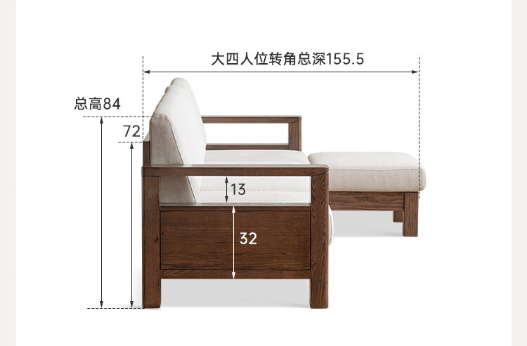 Genji Wood Language Sofa New Chinese Style Sofa Modern Simple Living Room Fabric Sofa Large Four Persons + Footstool Walnut Color