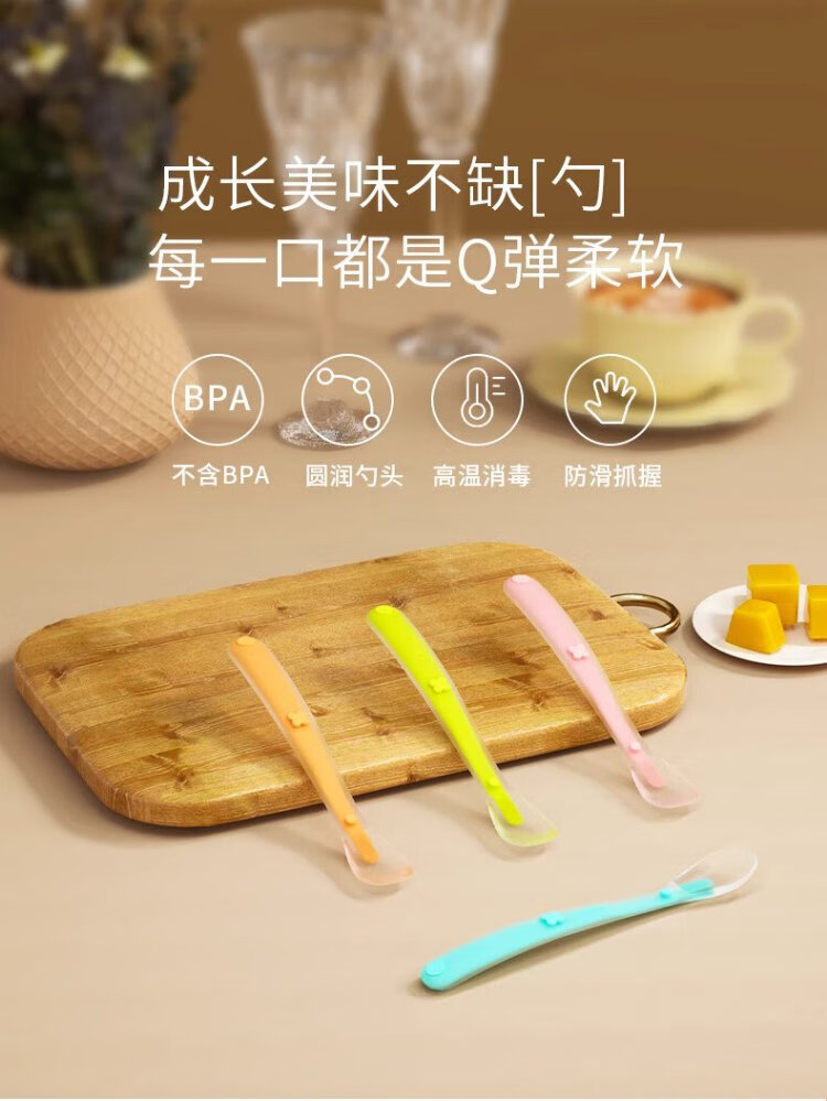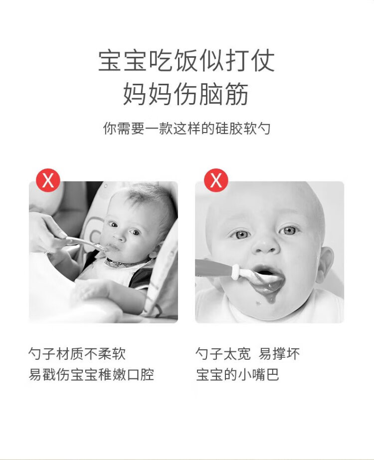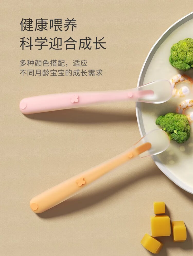 COOKSS newborn baby spoon children's silicone spoon infant food supplement spoon baby water feeding soft head spoon two pack