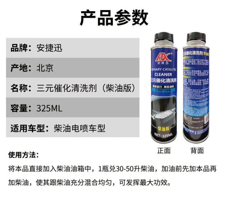 Anjiexun diesel additive removes carbon deposits, extinguishes fault lights and eliminates the need for disassembly of exhaust gas purification three-way catalytic cleaning agent 325ml