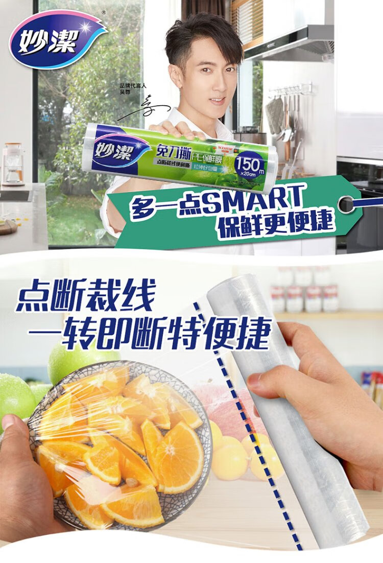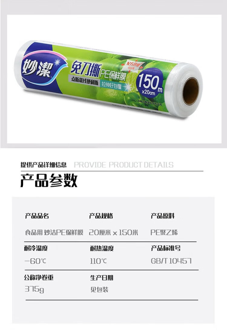 Miaojie knife-free PE cling film 150 meters small economical size