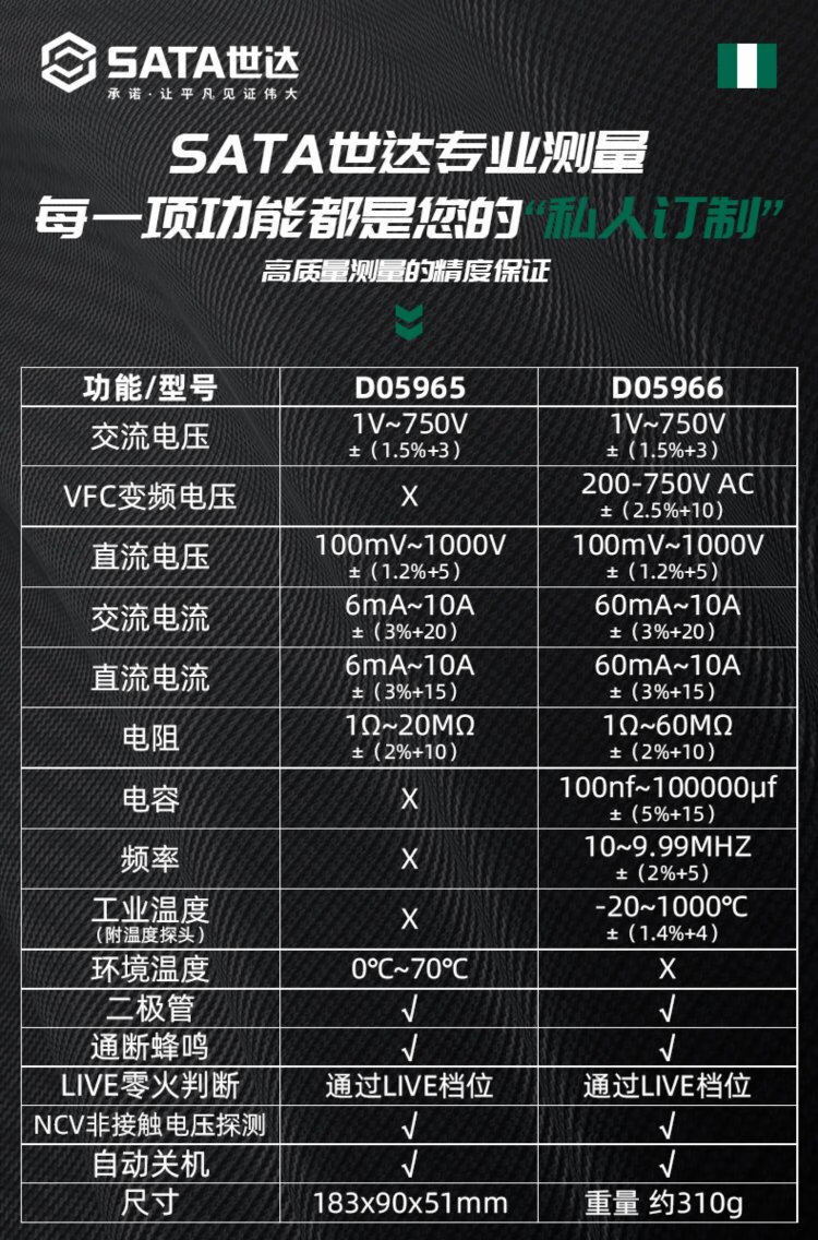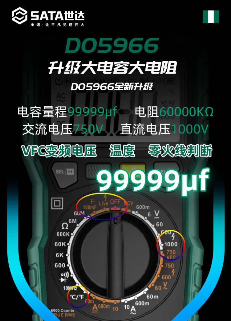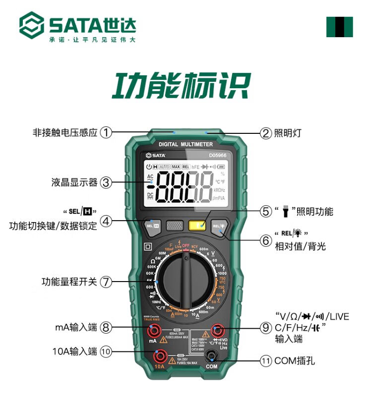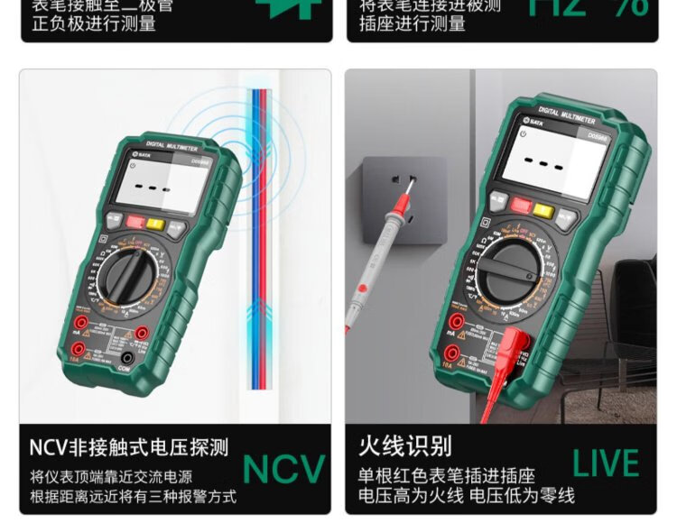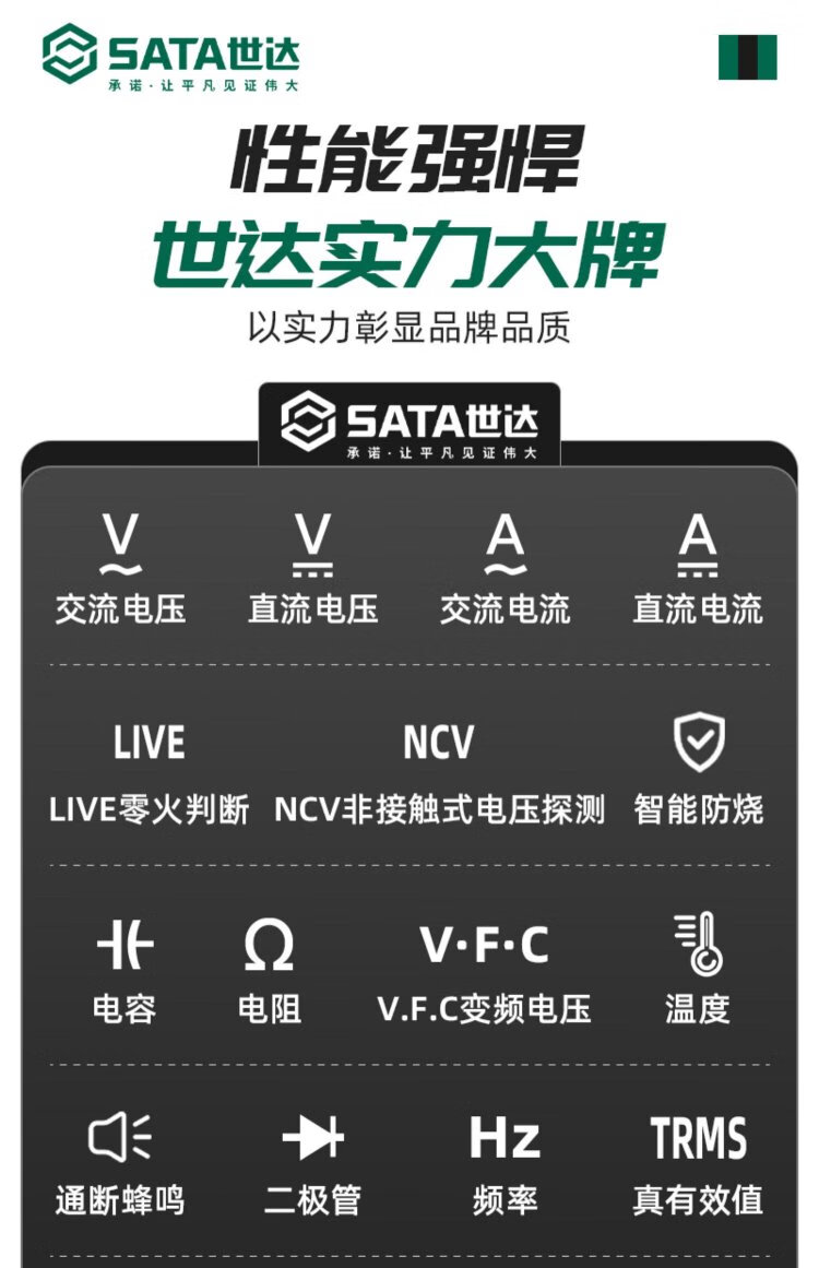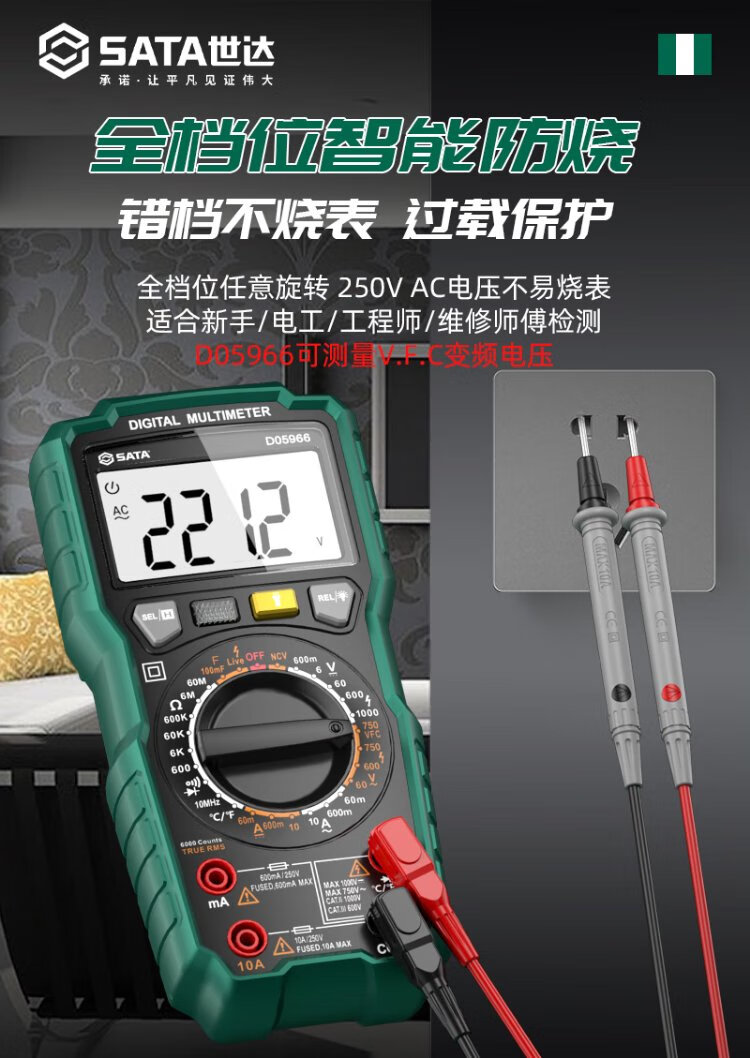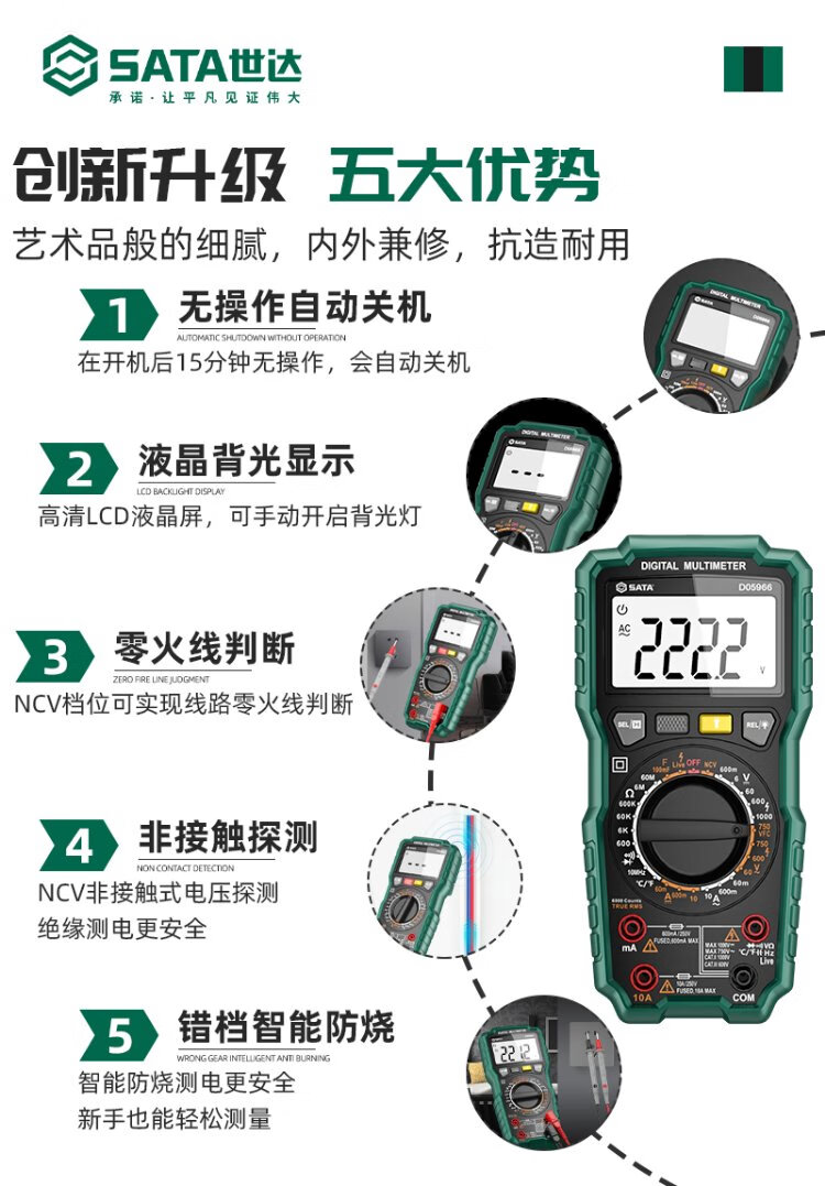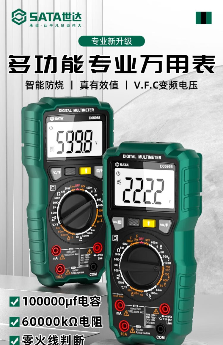 SATA multimeter digital high-precision fully automatic ammeter intelligent anti-burn capacitance meter D05965 comes standard