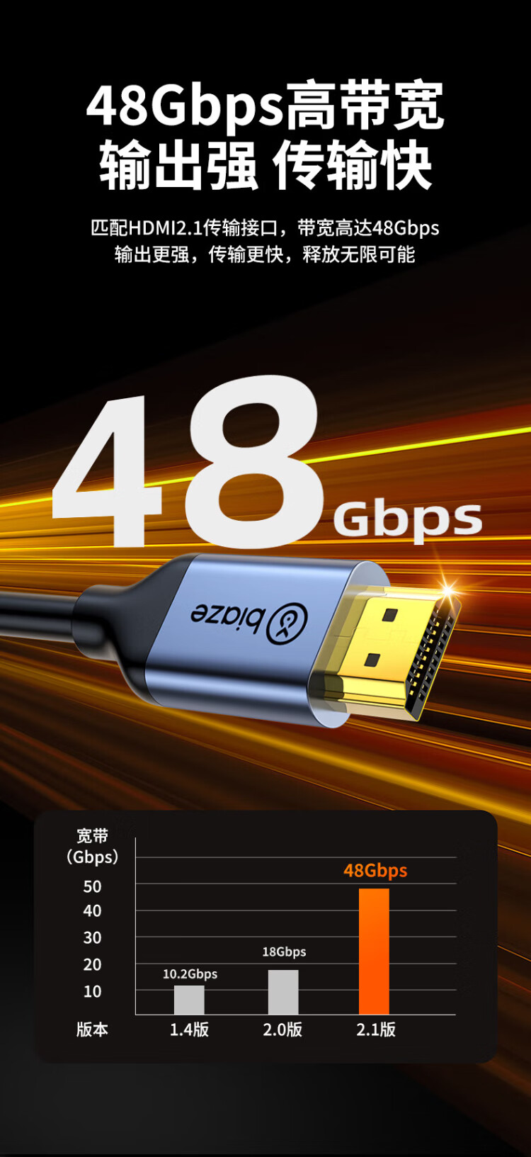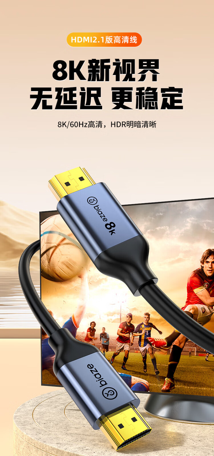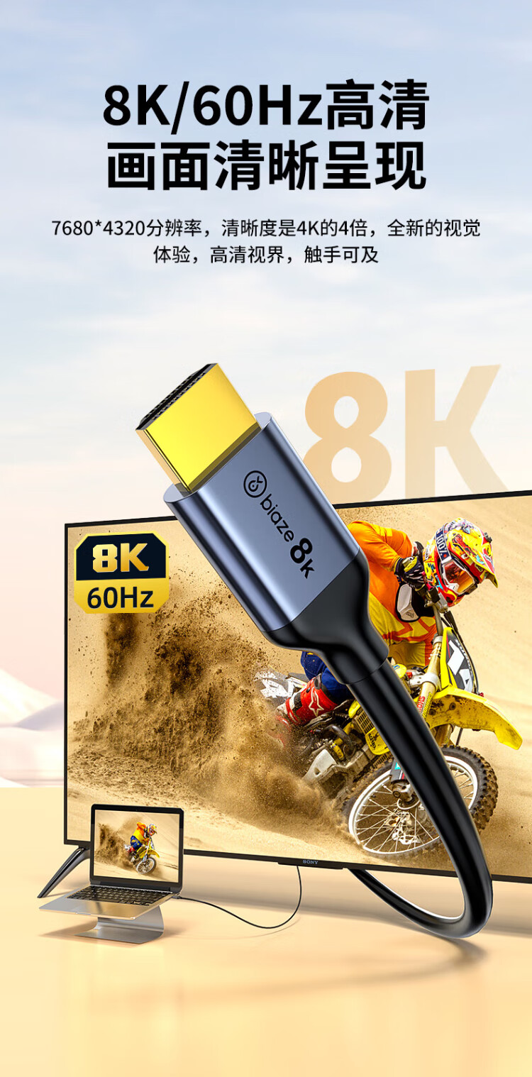 Biaz HDMI cable version 2.1 3 meters 8K60Hz/4K240Hz/2K240Hz computer connected to TV monitor projector video cable HDMI2.0 supports eARC