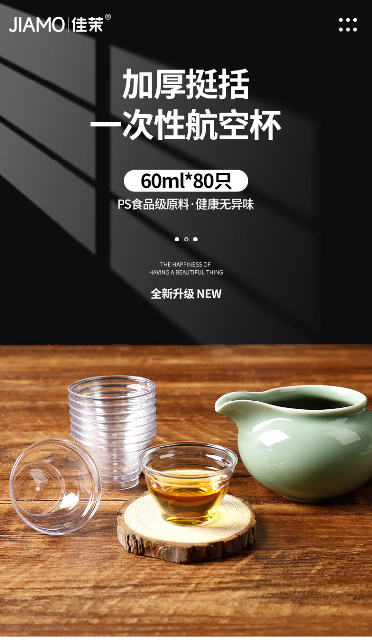 Jiamo aviation cups 80 pieces, disposable tea cups 60ML plastic thickened small wine cups, transparent tasting cups for tea and drinking