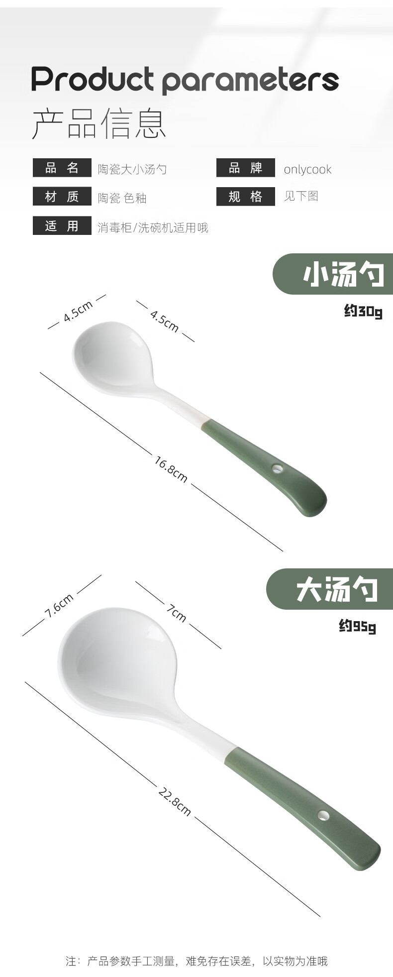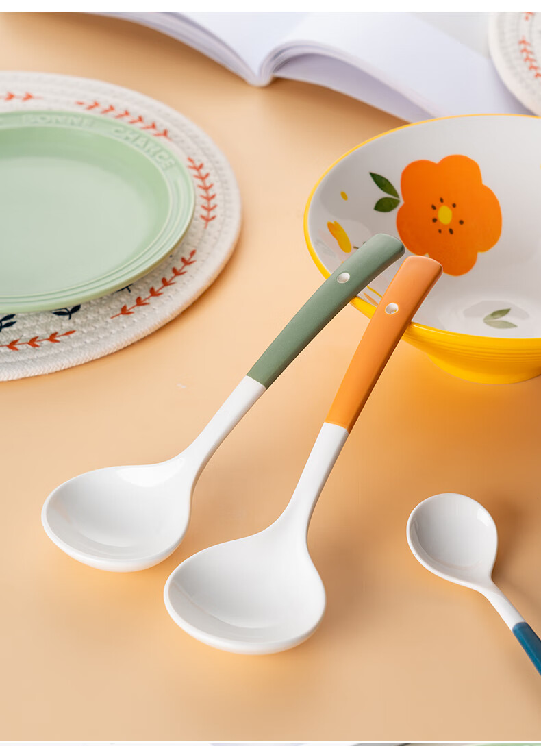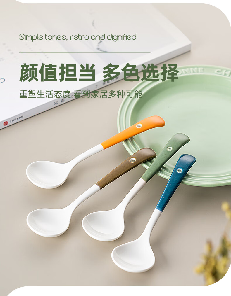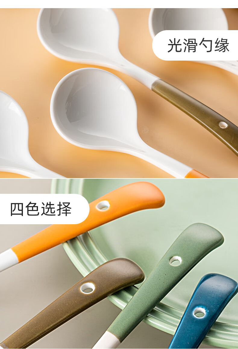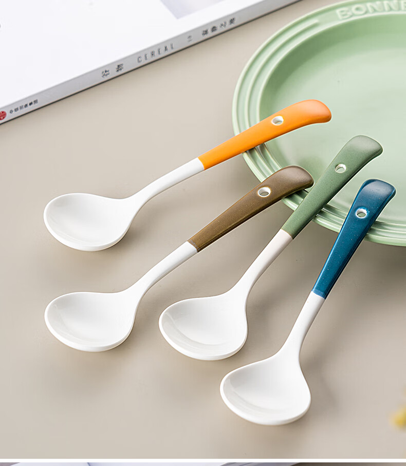 Onlycook ceramic soup spoon rice spoon large table spoon ceramic tableware spoon spoon with hole for hanging ginkgo green large size