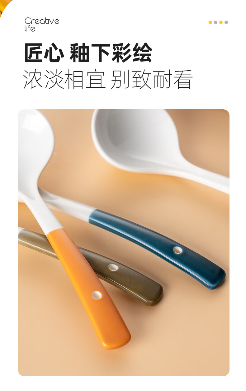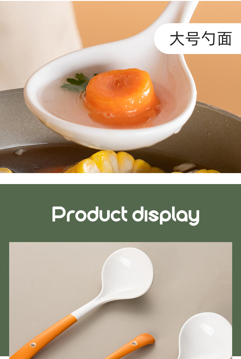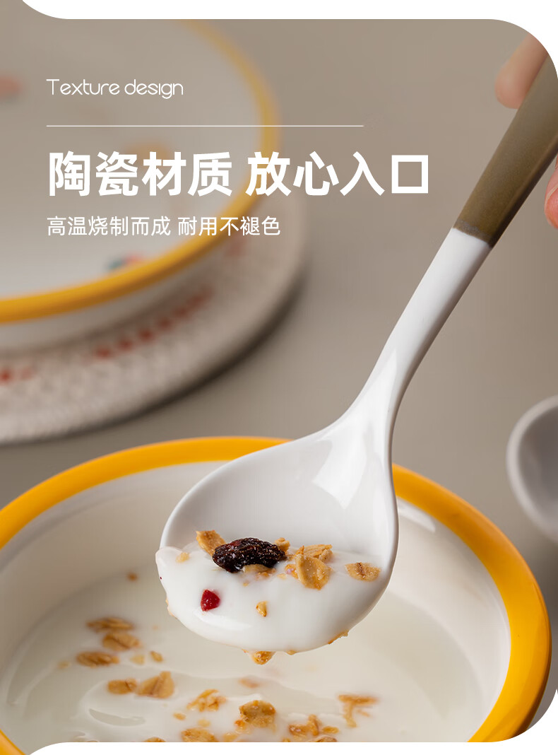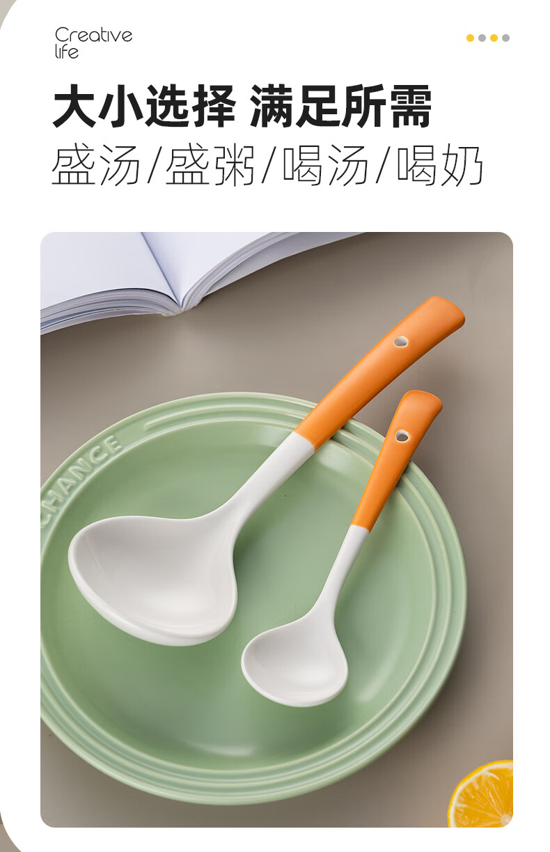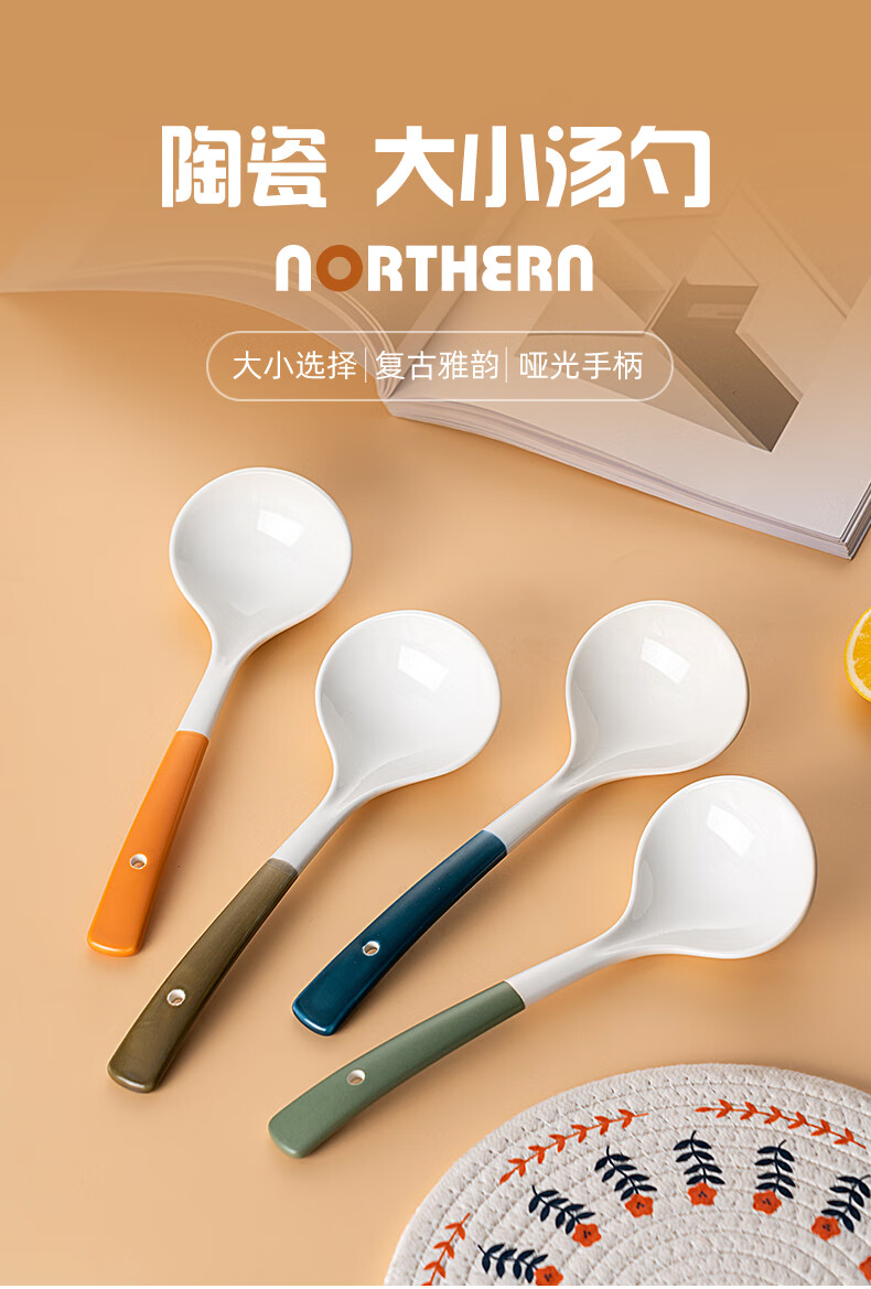 Onlycook ceramic soup spoon rice spoon large table spoon ceramic tableware spoon spoon with hole for hanging ginkgo green large size