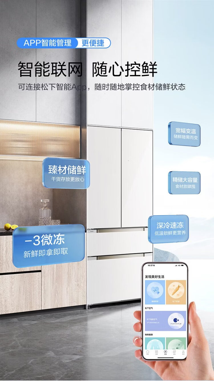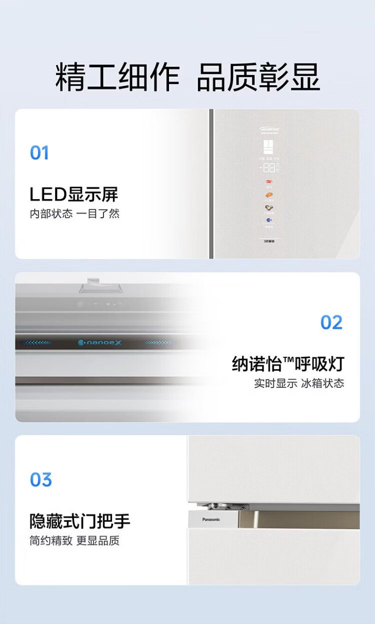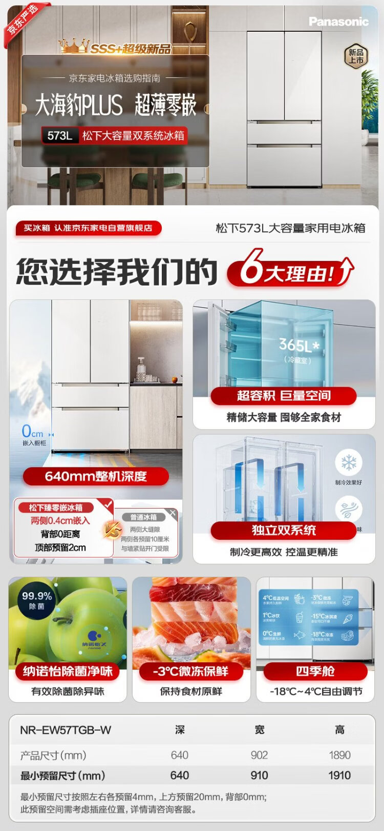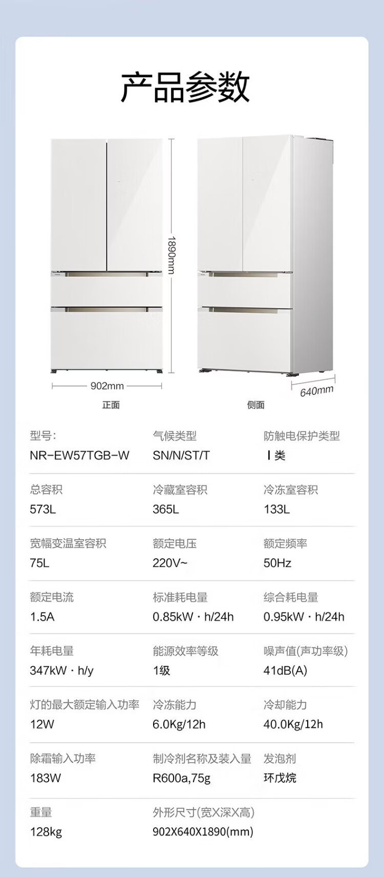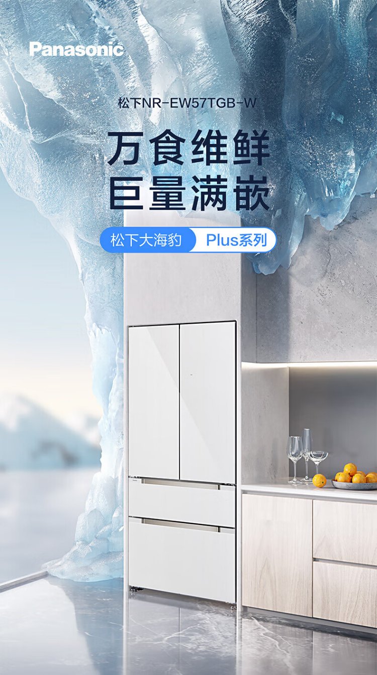 Panasonic Big Seal PLUS 573 liter refrigerator pearl white ultra-thin zero-embedded dual system sterilization French four-door tempered glass upgraded model NR-EW57TGB-W